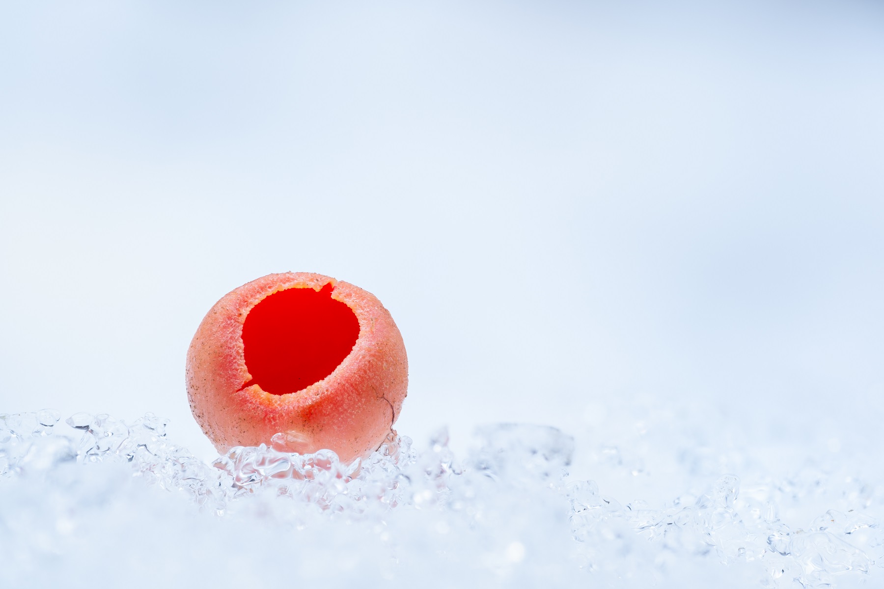 Ich mag Fotos von Pilzen im Schnee vor allem auch deshalb, weil nichts wegretuschiert werden muss. Bei f 2,8 verschwimmt der Hintergrund automatisch in diesen pastelligen Tönen, wenn die Belichtung gut gelingt.