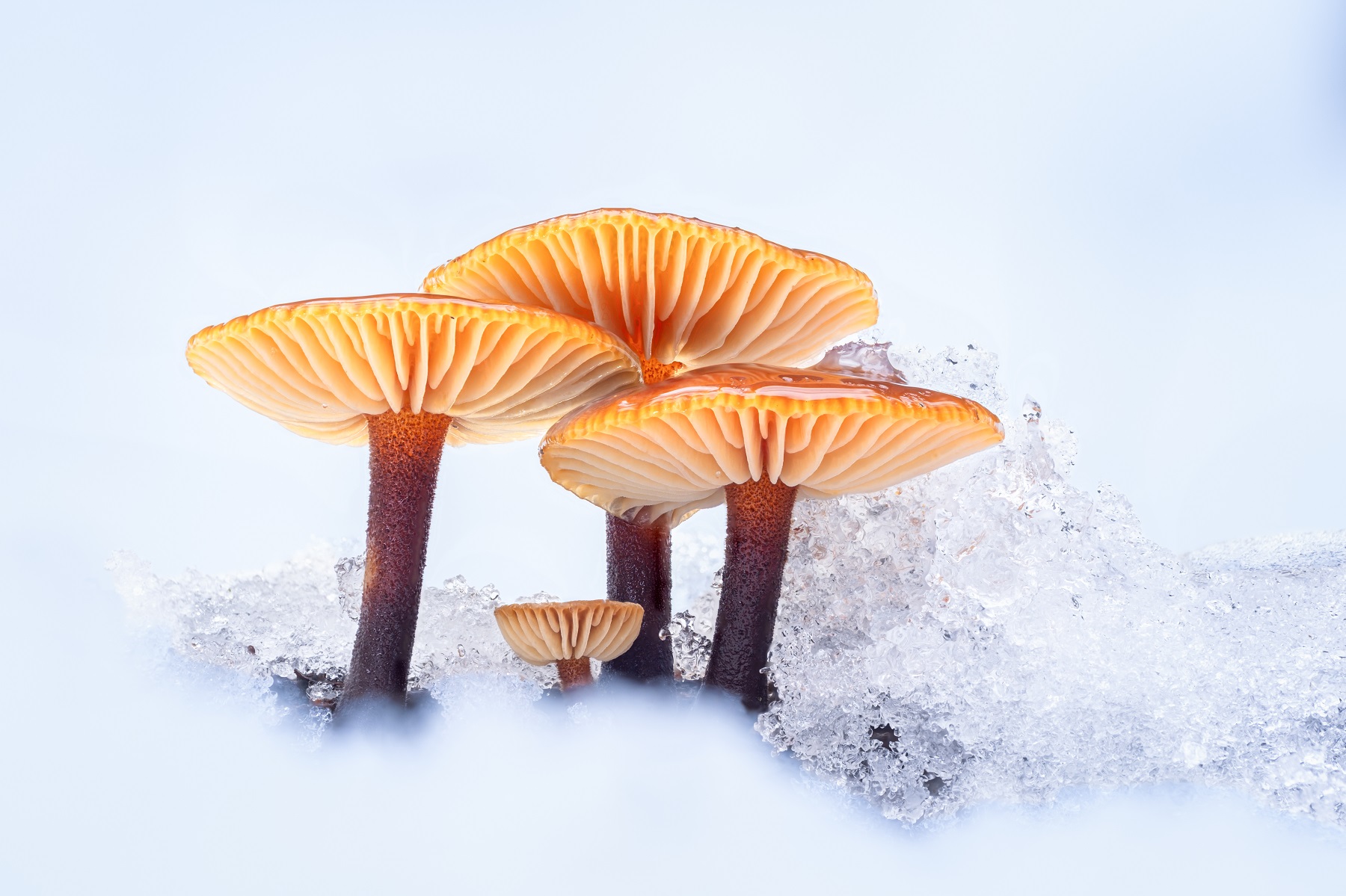 Im Winter Pilze zu fotografieren, ist immer etwas Besonderes. Es gibt relativ wenige Arten, die sich finden lassen. Schnee, Eis oder Raureif verändern die Pilze. Die Vor- und Hintergründe der Motive sind oft minimalistisch, die Farben des Lichtes wesentlich kühler. Es gibt keine Zecken oder Mücken. Dafür ist es jedoch teilweise empfindlich kalt. Länger bei einem Pilz zu bleiben, ohne sich zu bewegen, wird schnell ungemütlich. Im Wald ist es wesentlich ruhiger als zu anderen Jahreszeiten. Alles zusammen führt zu Fotos, die ganz anders sind, als zu anderen Zeiten im Jahr.