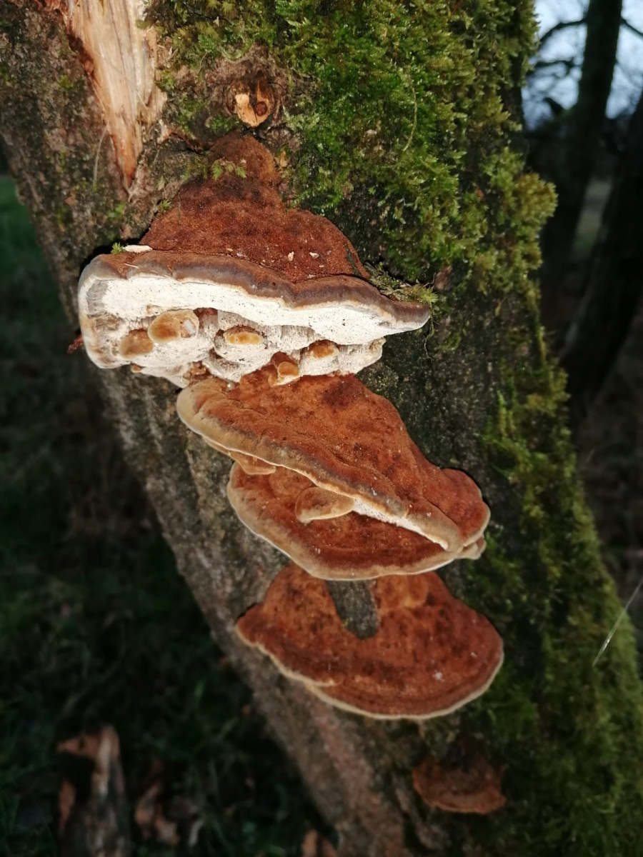 Ich habe hier zwei Baumpilze von denen ich gerne wissen möchte was für Baumpilze es sind? Ich dachte zuerst es wären Zunderschwämme aber wegen der rotbraunen Poren - Schicht bin ich mir nicht sicher! Vielleicht könnt Ihr ja die Pilze bestimmen??