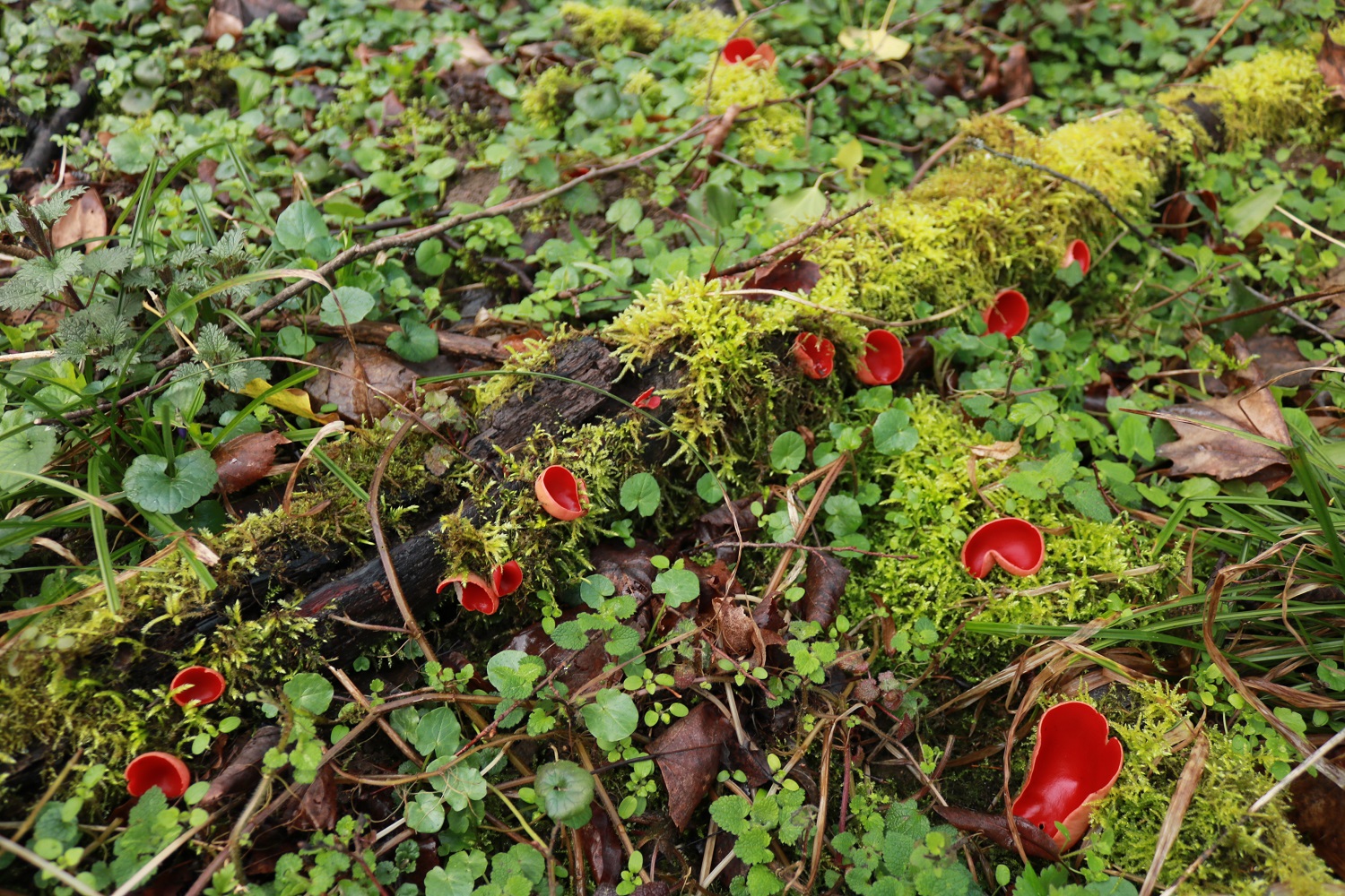 Ab Februar 2020 dürfte man in Baden Württemberg diese wunderschöne Kelchbecherlinge bewunden. Beorn hat mehrere FK von mindestens zwei Fundorten mikroskopiert und immer bei Sarcoscypha austriaca = Österreichischer Prachtbecherling oder (weniger sepktakulär klingend) Gemeiner Kelchbecherling rausgekommen.