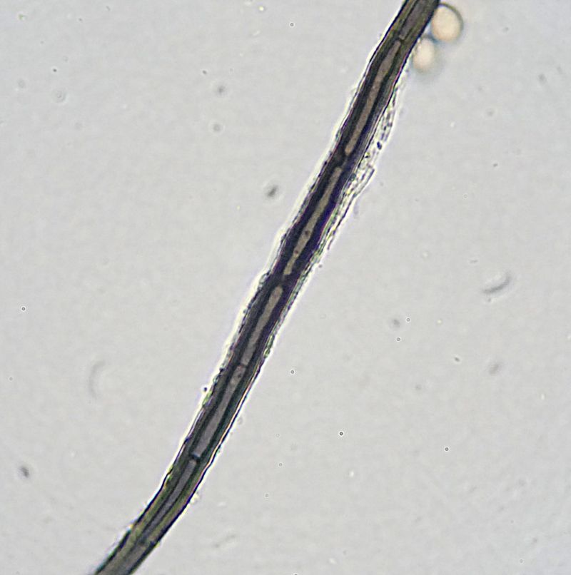 - Haare sind immer apikal gekrümmt, dickwandig und ca. 6 - 7 µm dick