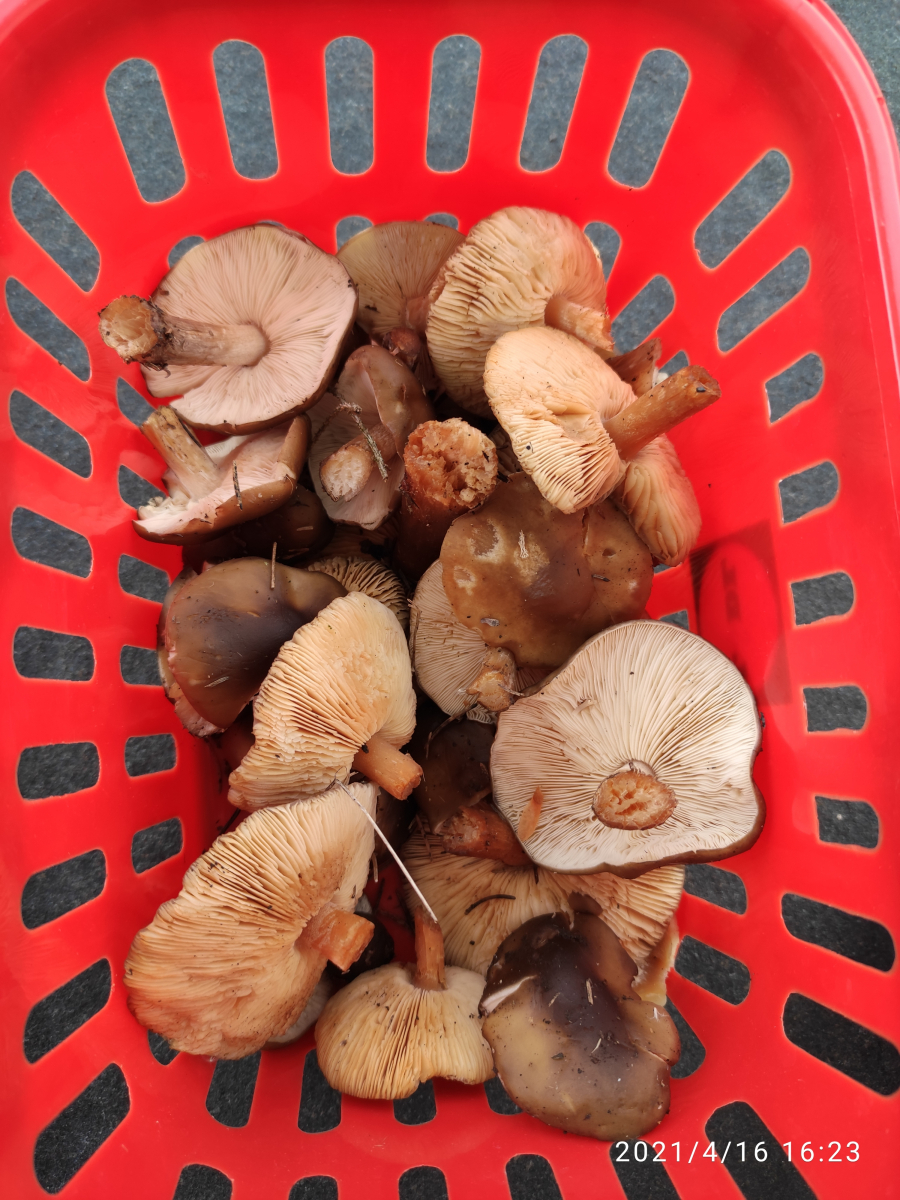 Besten Dank für den Hinweis. Ich habe gestern noch das Sporenpulver angeachaut, weil ich den Dachpilz-Hinweis prüfen wollte. Da der Standort typisch für die weichritterlinge war (lichte Stelle im Nadelwald im Reisig) und sie nicht auf Holz wuchsen, war ich mir ziemlich sicher, dass es sich um Weichritterlinge handelt. Auch das Sporenpulver war bei allen weiß und nicht rosa, daher vermute ich, dass es doch alles weichritterlinge unterschiedlichen Alters waren.