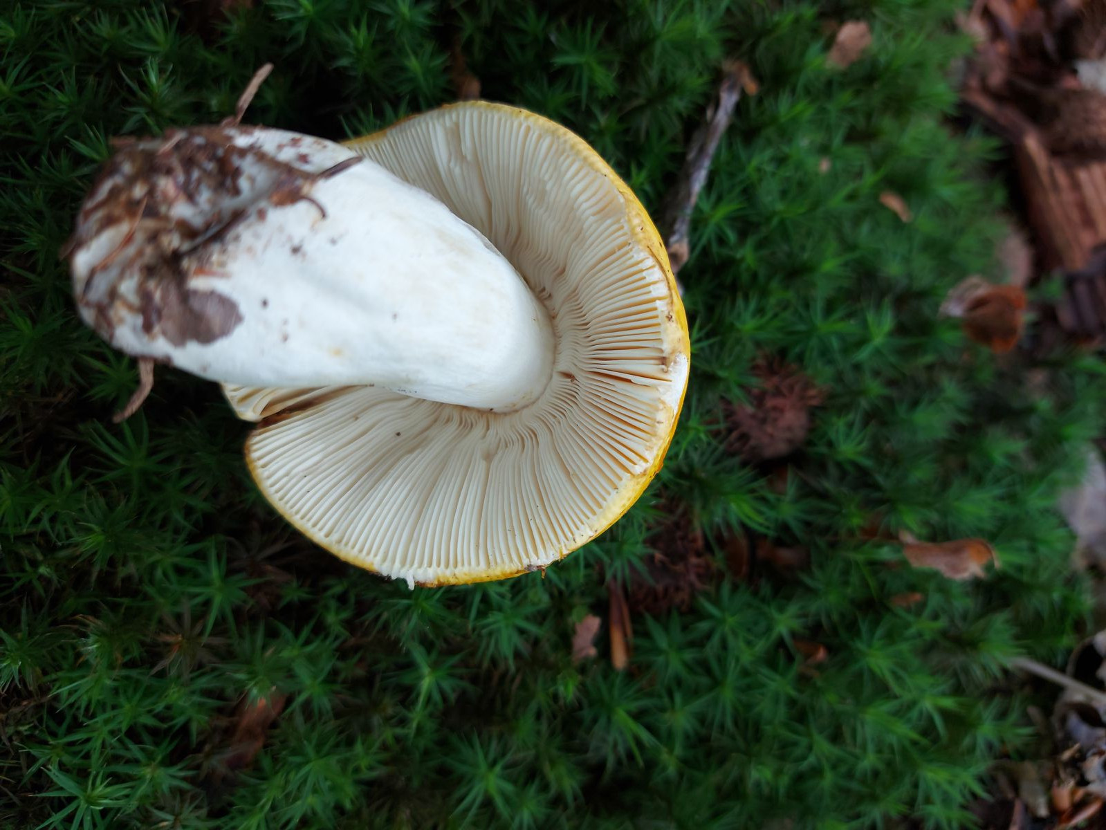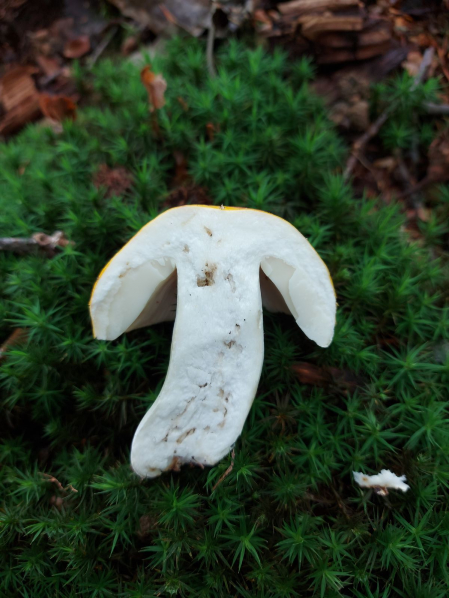 Davon abgesehen, dass der Pilz keinen weißen Stiel hat, wäre ich der gleichen Meinung wie Werner.