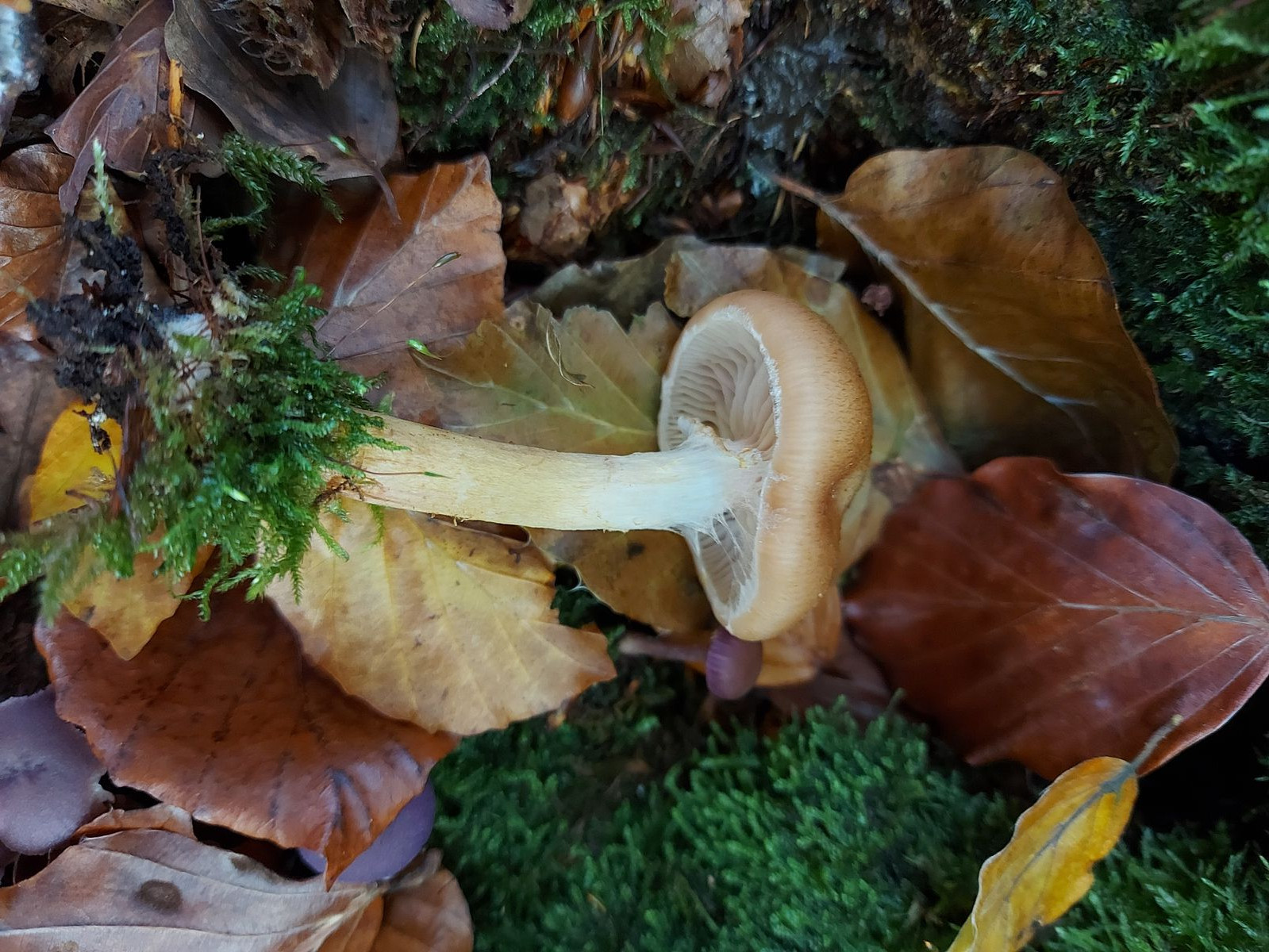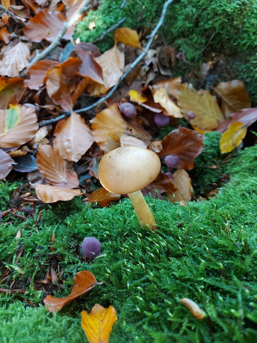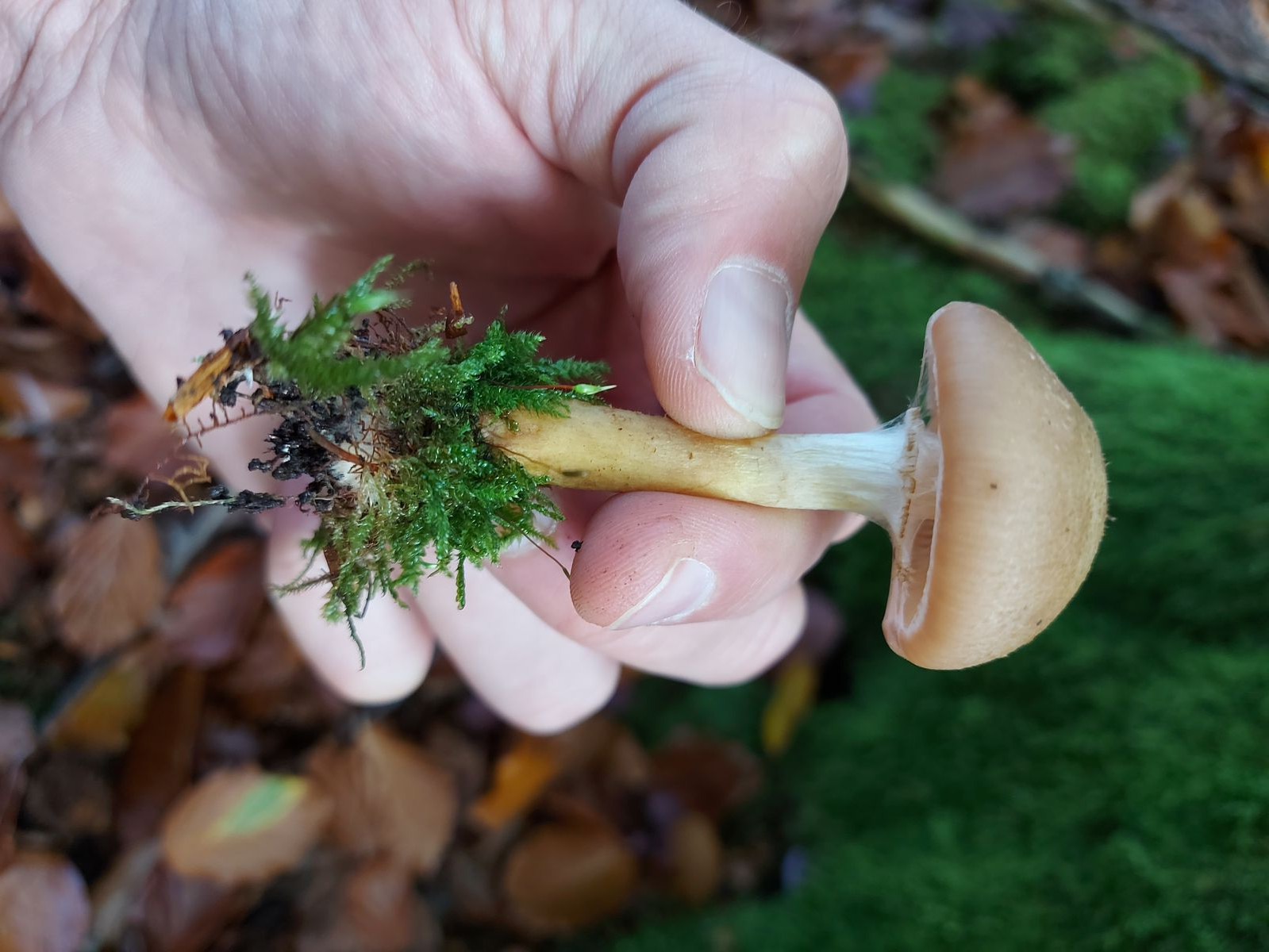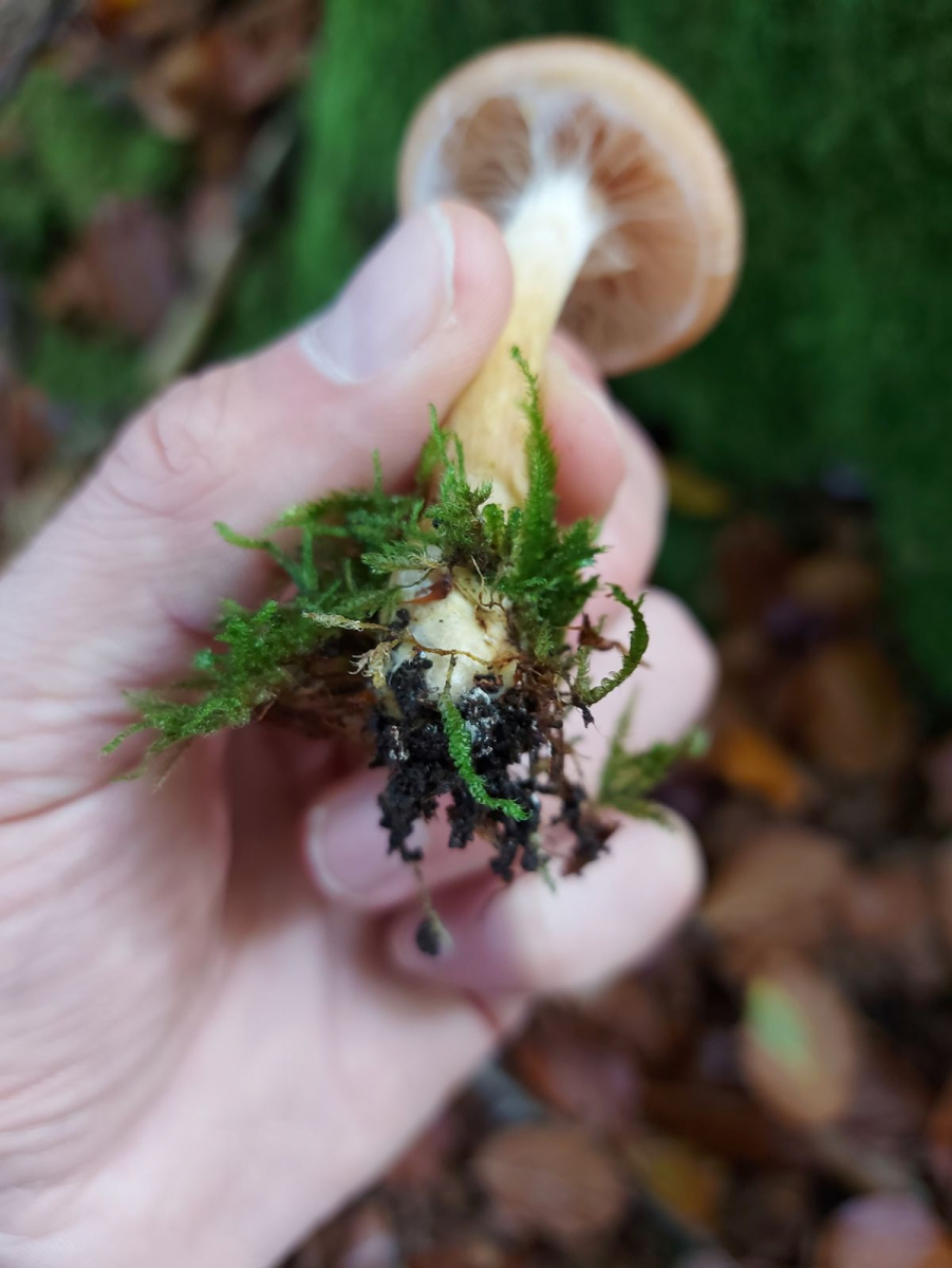 Der Stiel war auffällig fest und er wuchs in einem Buchenwald nahe einiger Moosflächen.