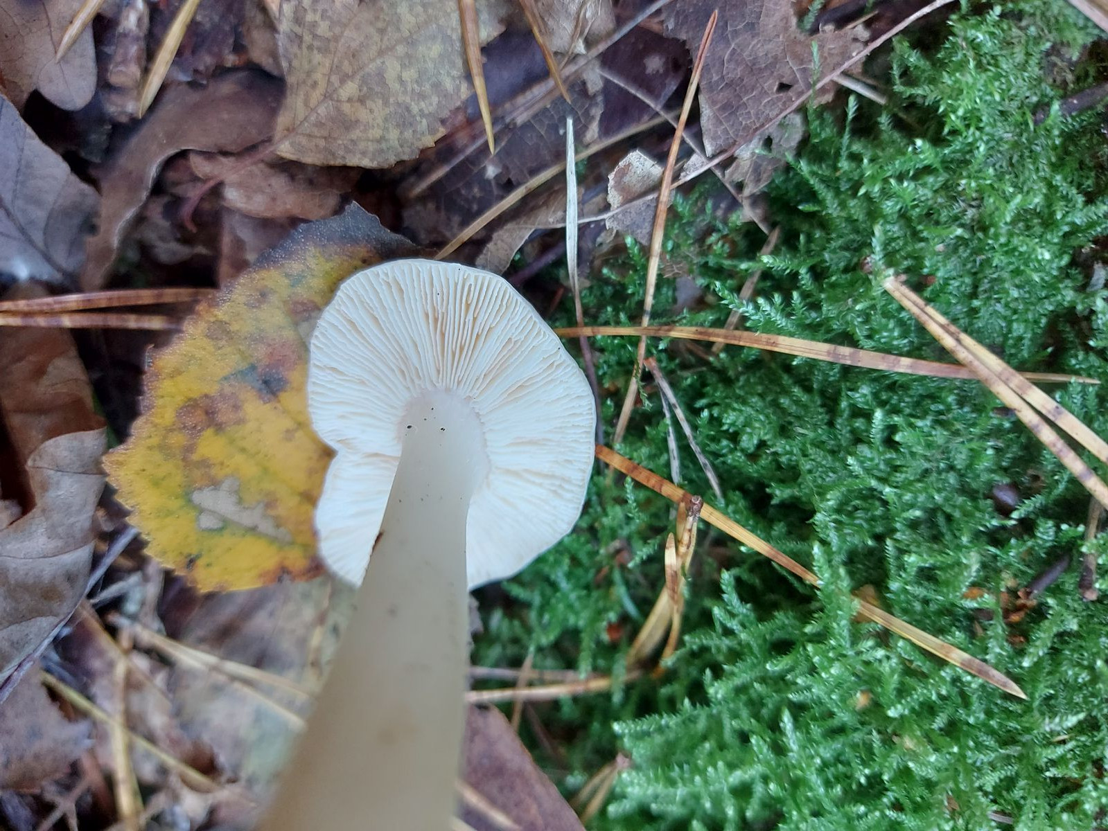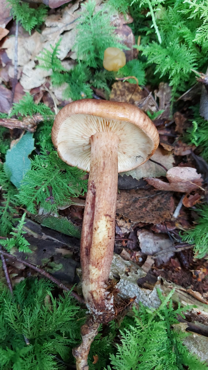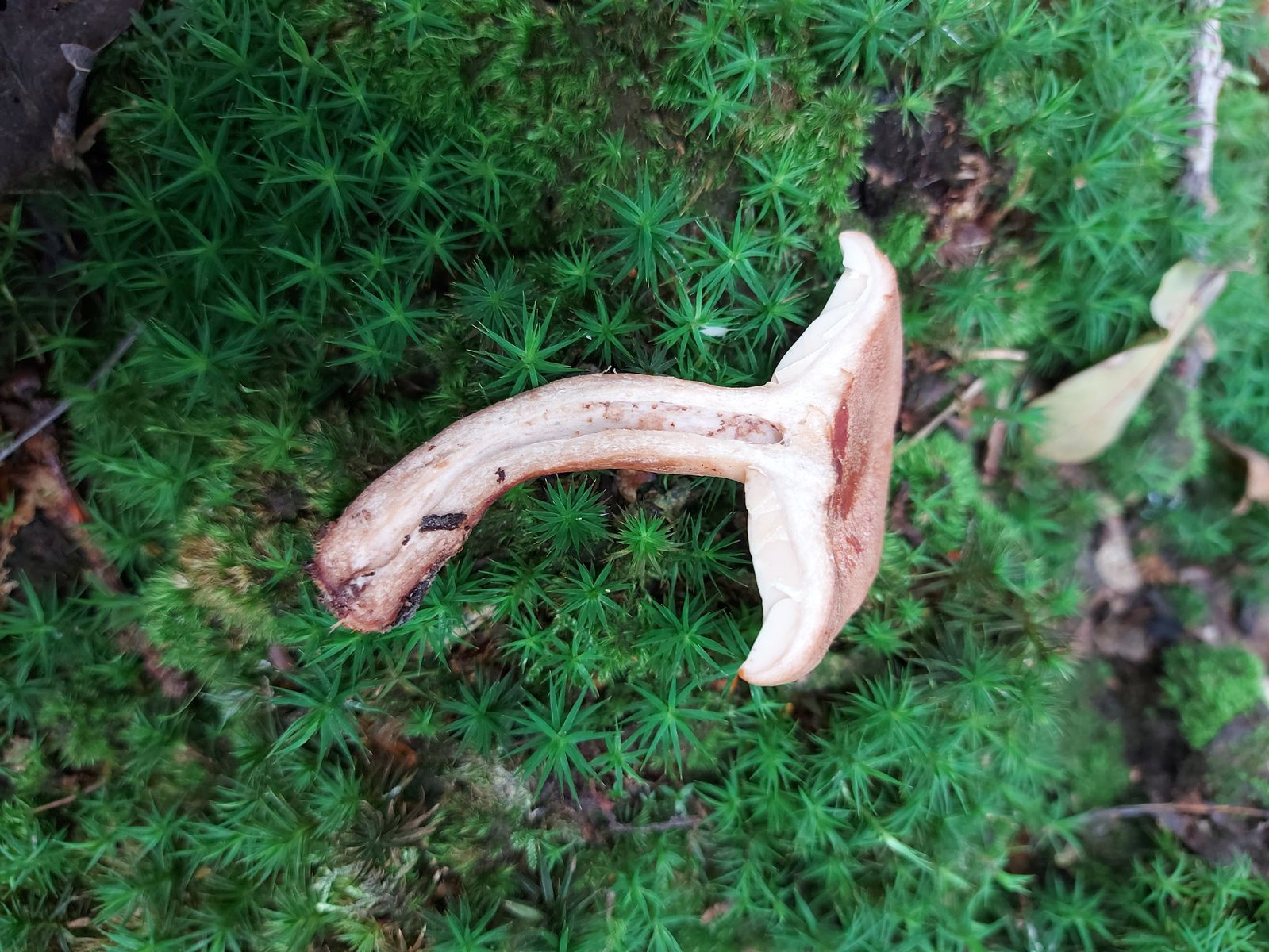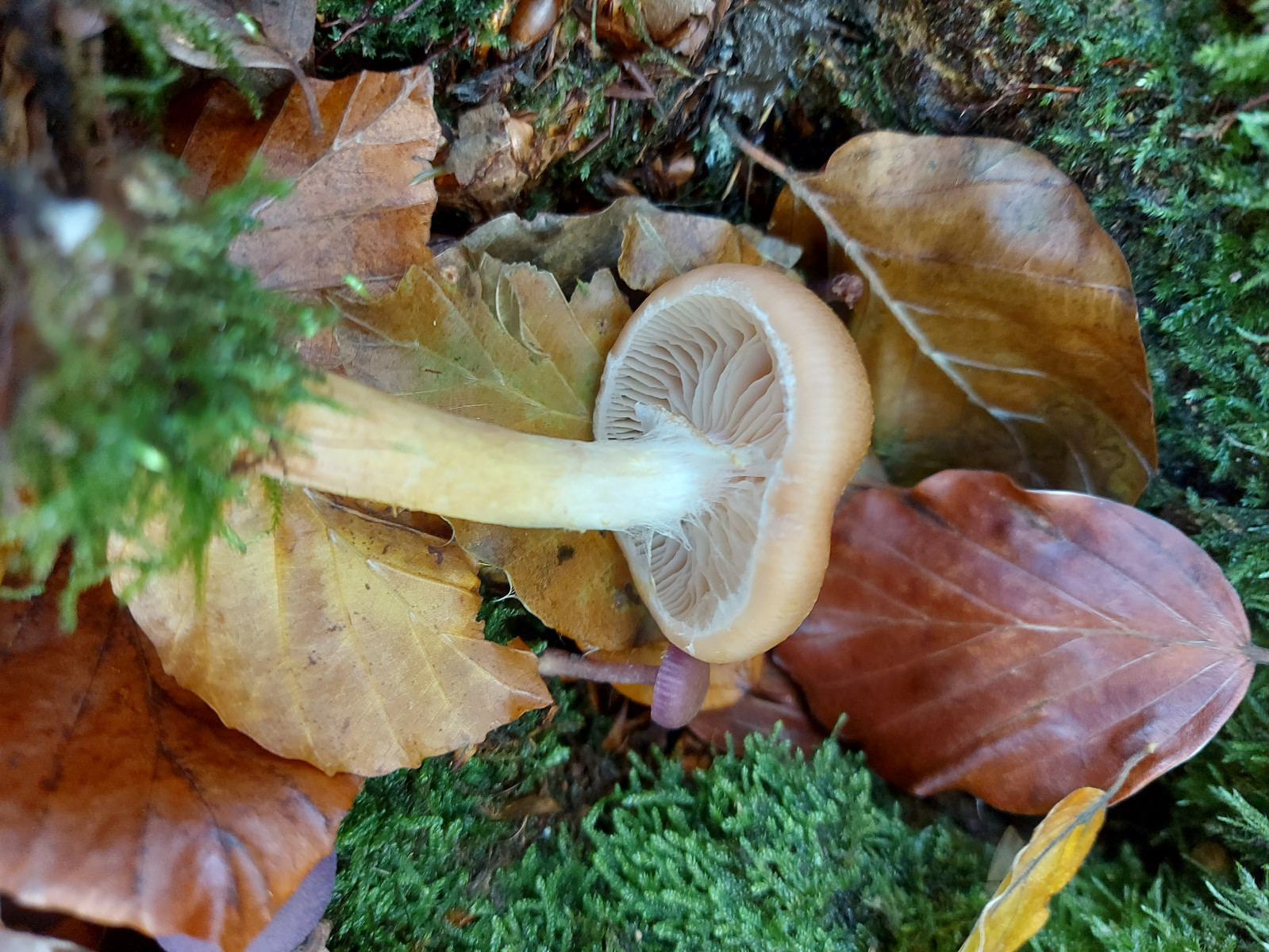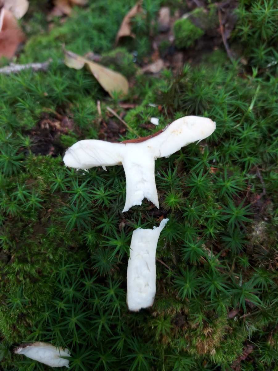 Der Stiel war auffällig fest und er wuchs in einem Buchenwald nahe einiger Moosflächen.