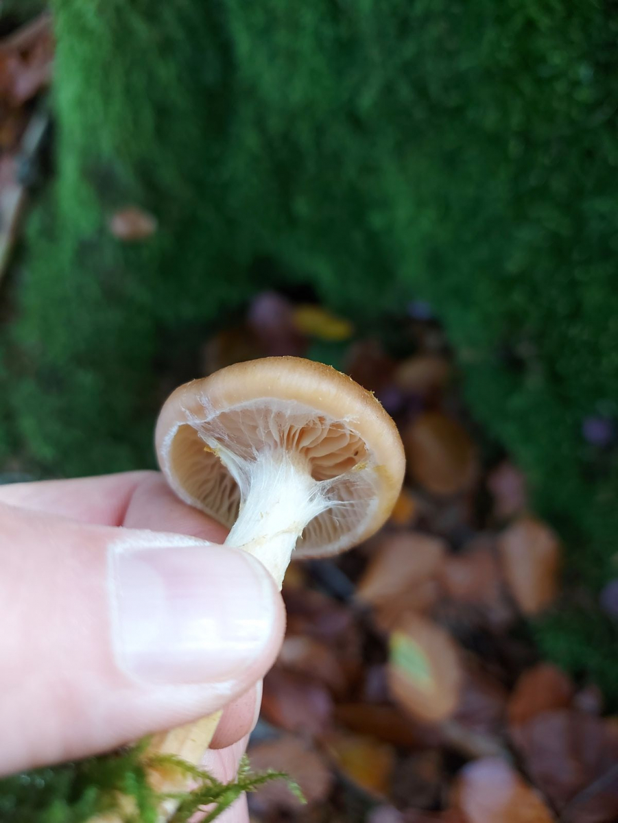 Der Stiel war auffällig fest und er wuchs in einem Buchenwald nahe einiger Moosflächen.