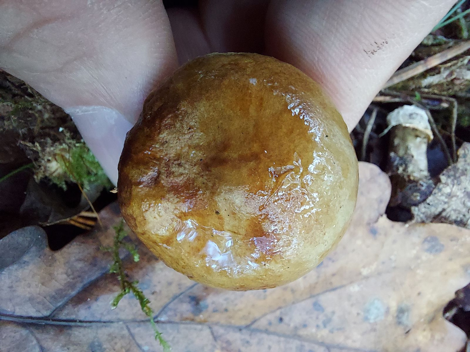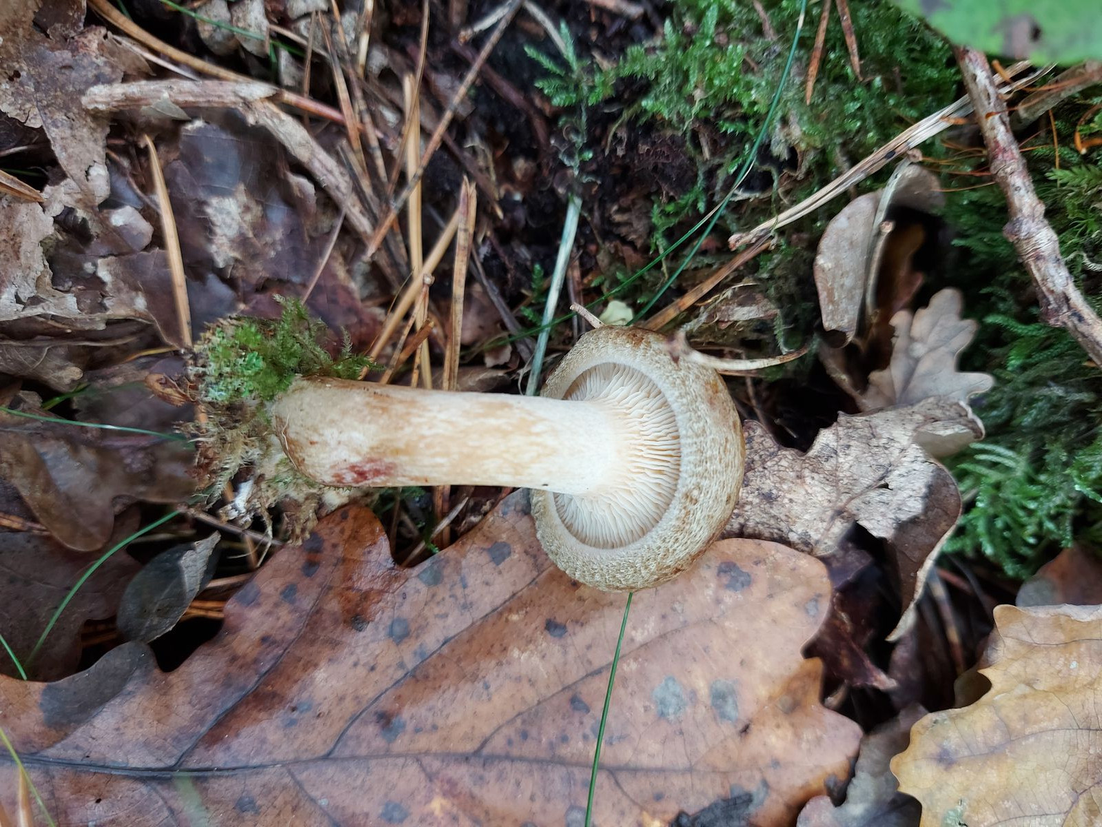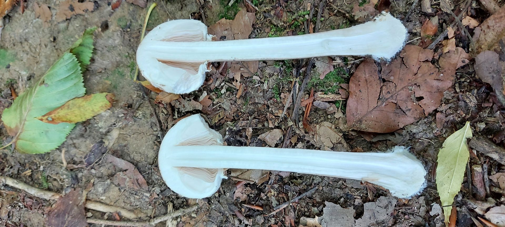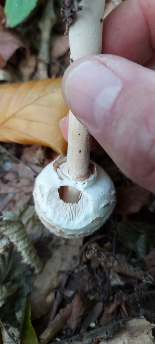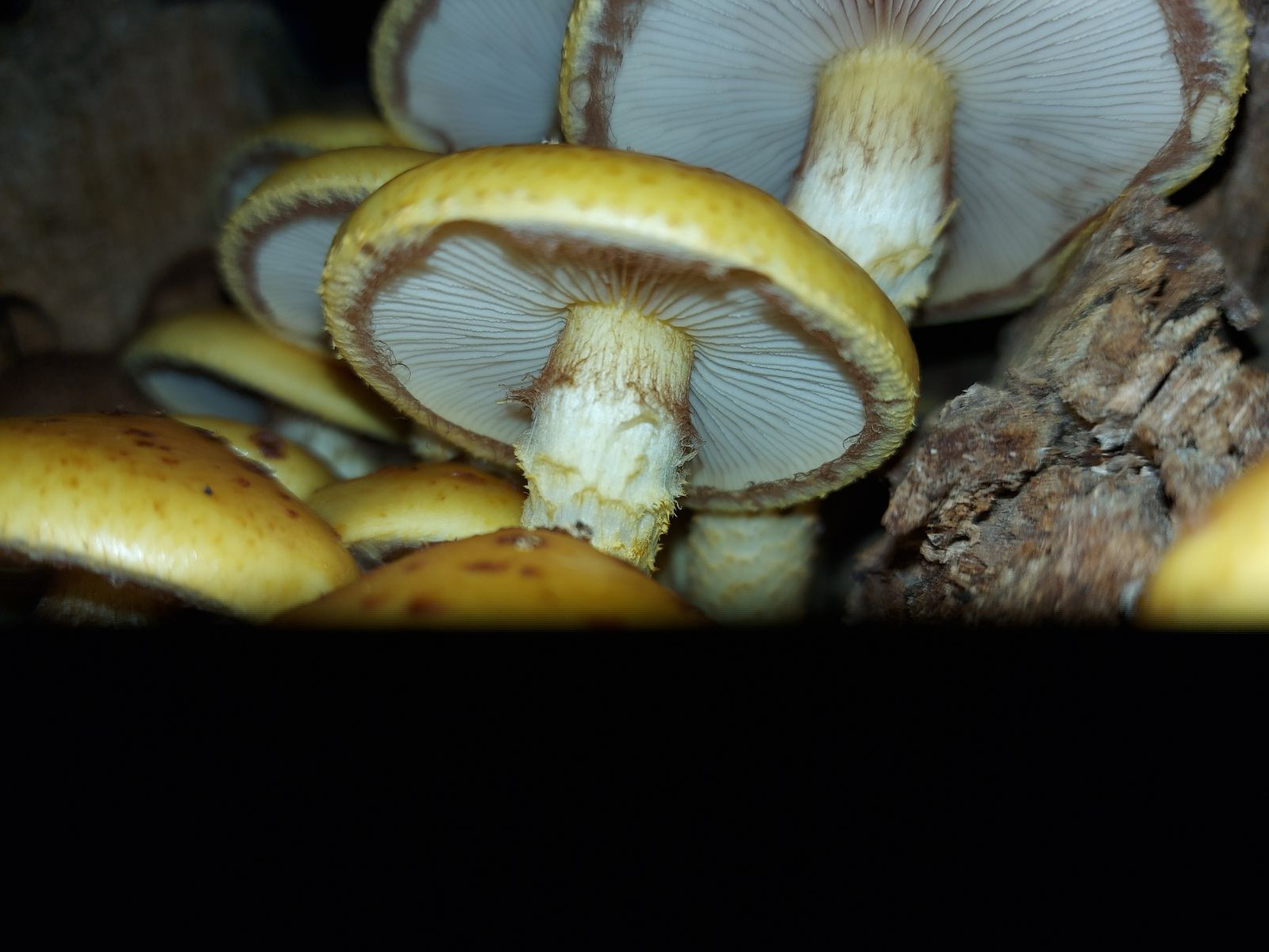 Die Pilze waren in kleinen Gruppen angeordnet und zwischen 1-3mm groß. Die Bildvergrößerung bei der Aufnahme beträgt 5:1.