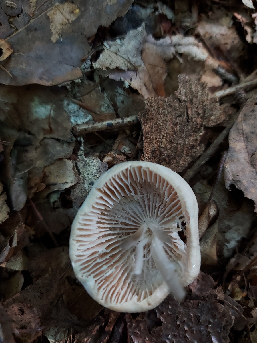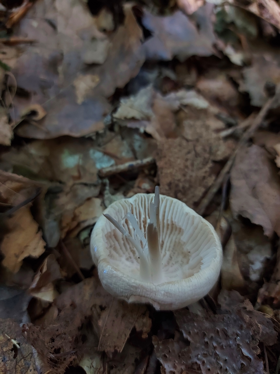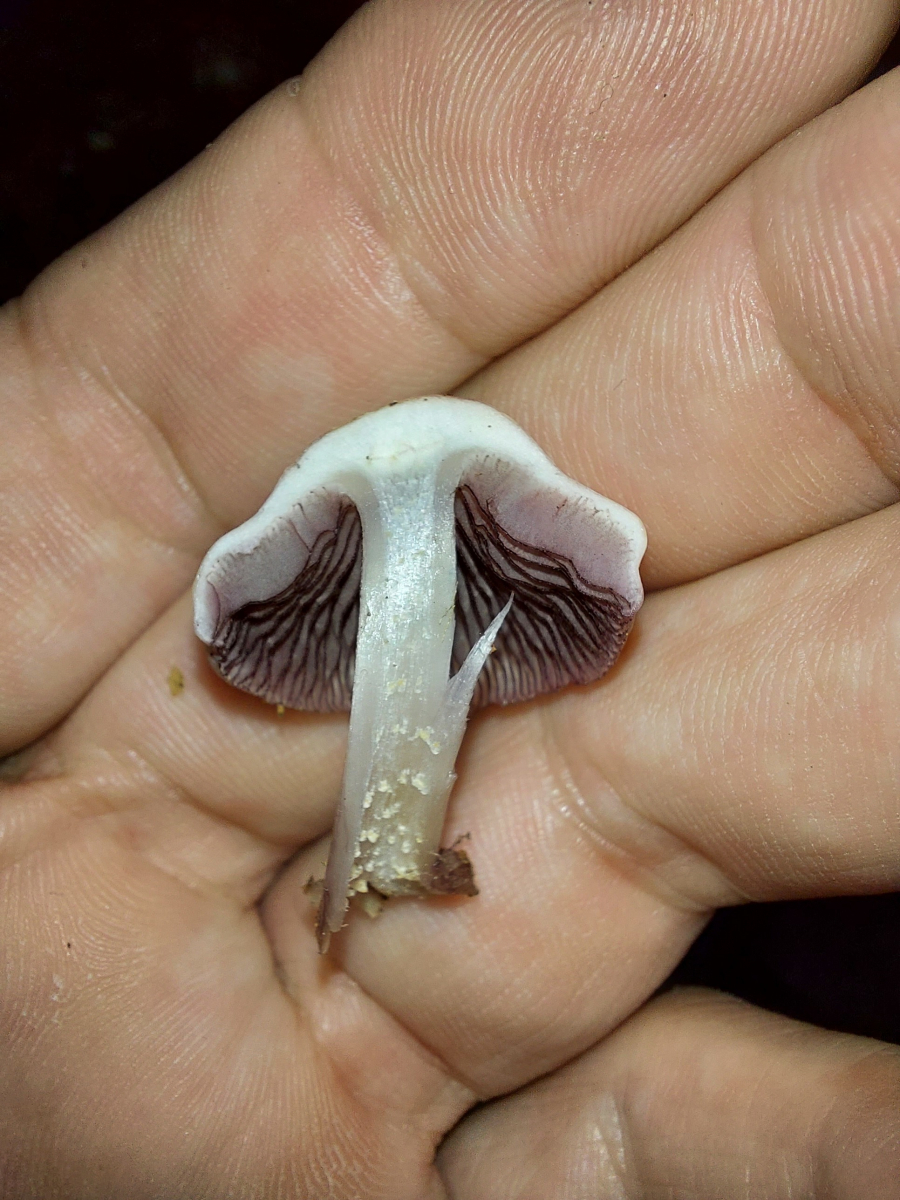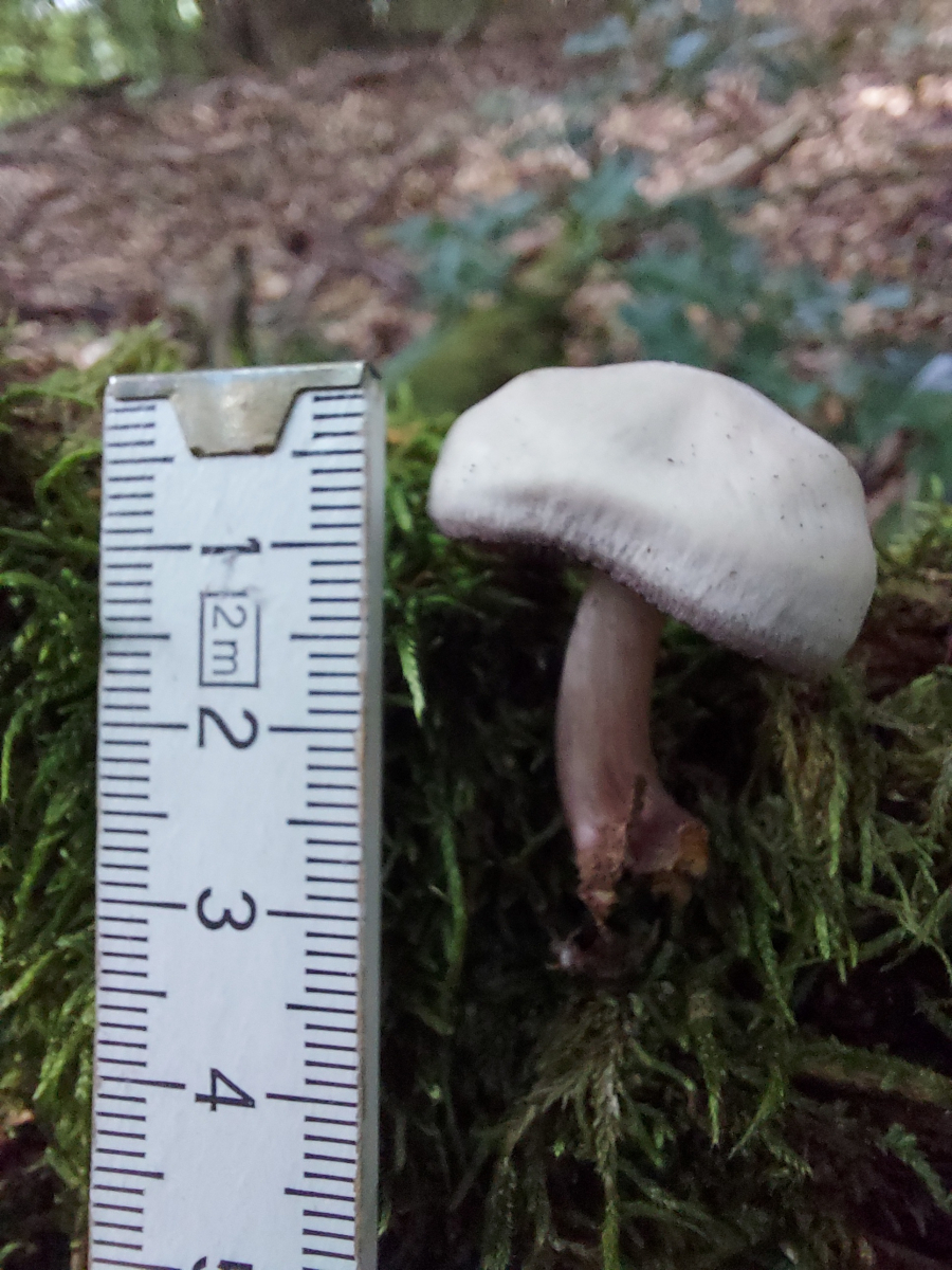Er stand nahe von rosa Rettichtrichterlingen, aber hatte viel dunklere Lamellen und roch viel stärker.