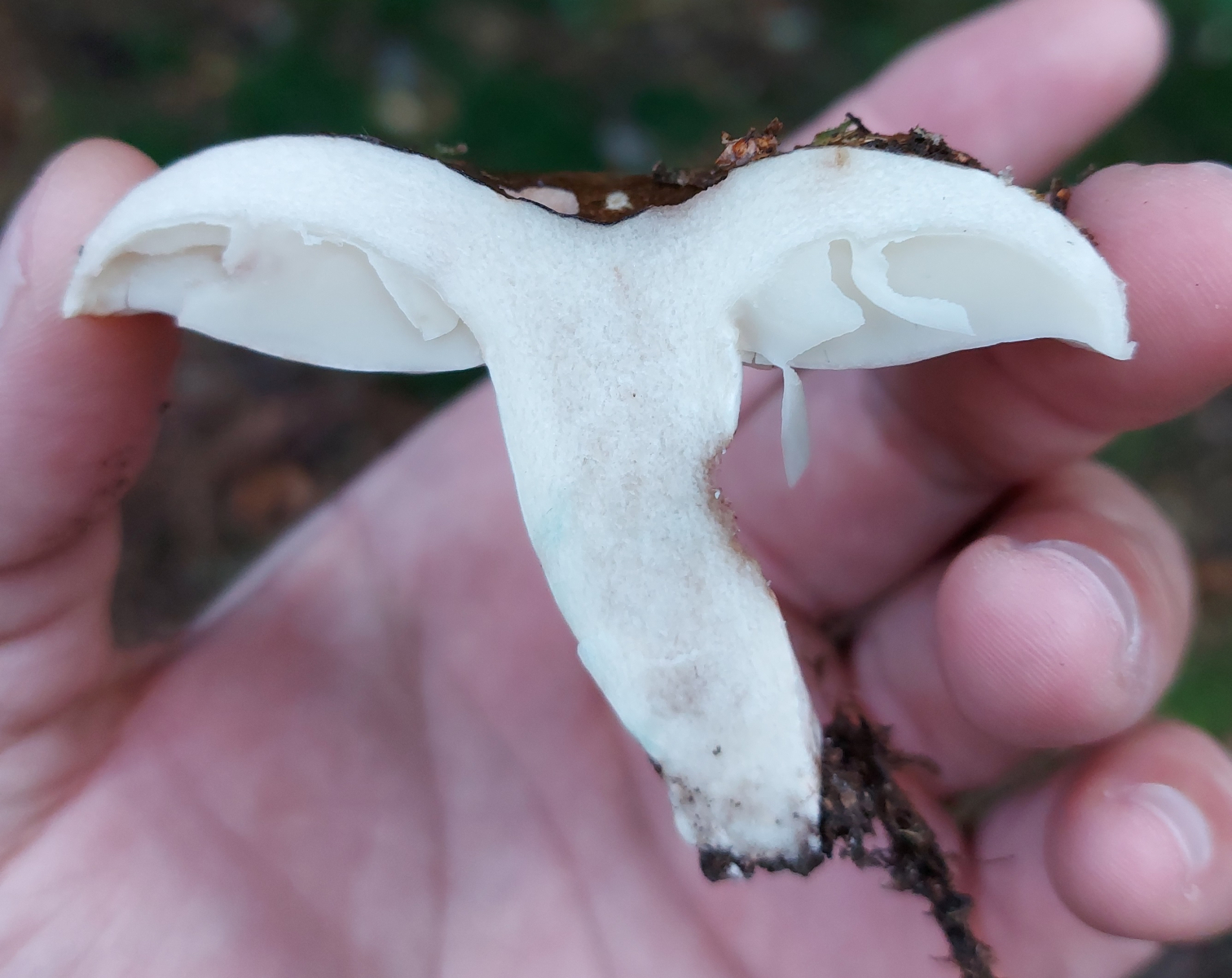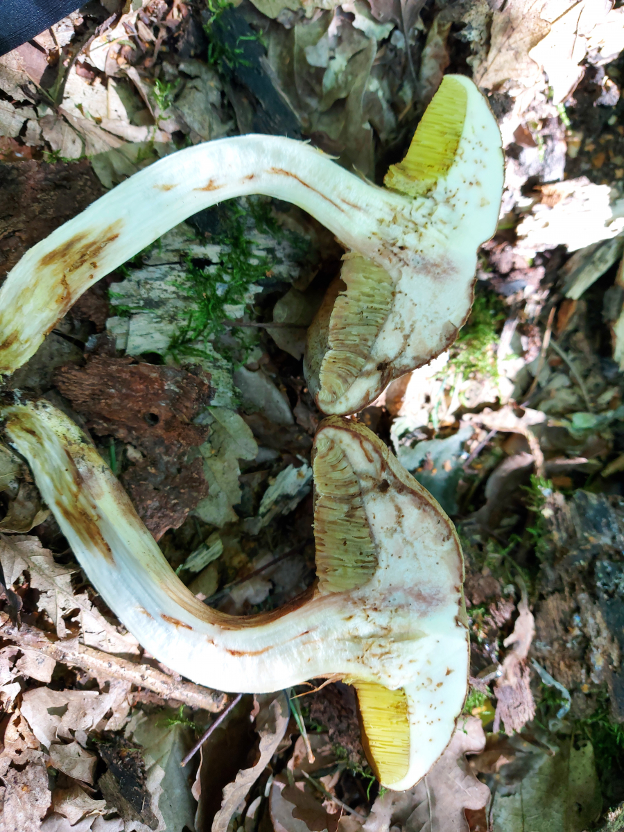 Muss dann demnächst mal etwas warten und sehen, ob sich der Pilz nach dem Schneiden verfärbt.