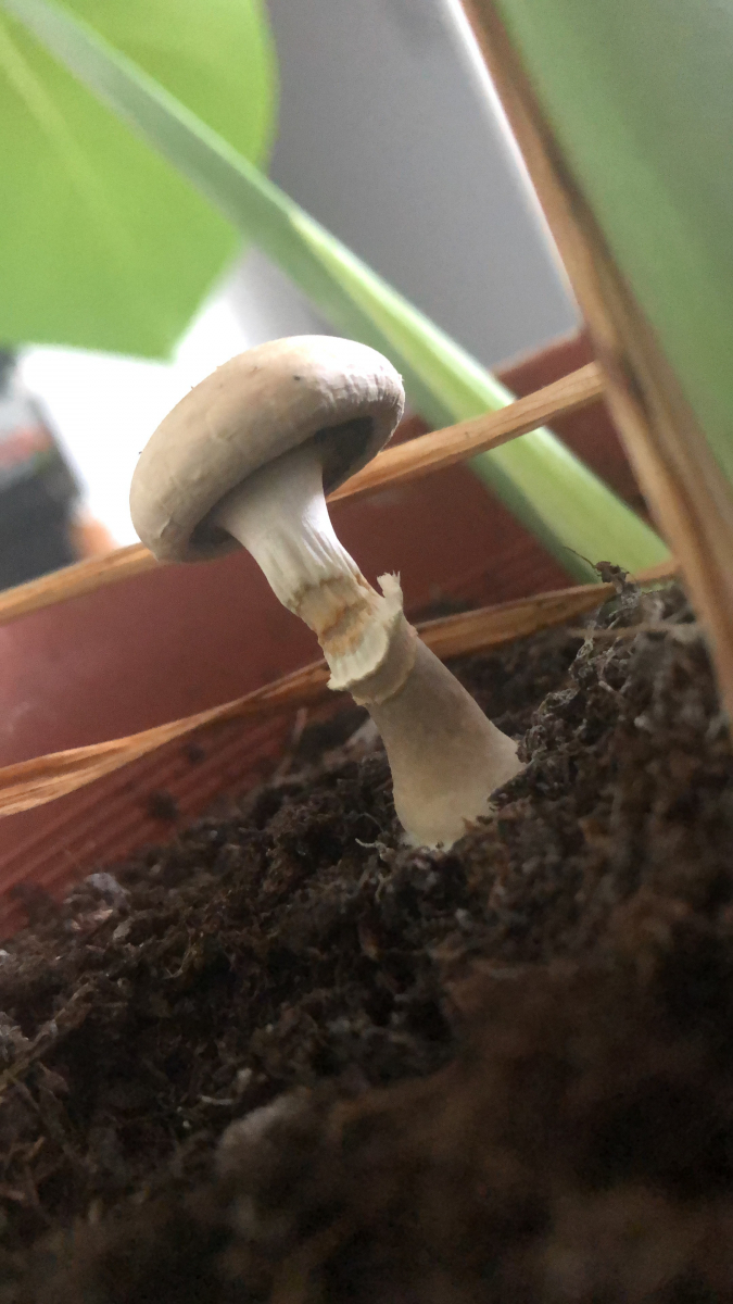 ich habe eben einen mir unbekannten Pilz im Blumentopf meiner Monstera entdeckt. Die Pflanze habe ich erst vor kurzem von einem Freund geschenkt bekommen, es ist also alles möglich. Als Laie meine ich, könnte es ein verkorkster Champignon sein. Dazu passen ja die dunklen, vom Stil abgelösten Lamellen, aber mich irritiert die etwas verdickte Knolle. Was sagt ihr? (Keine Sorge, ich werde ihn nicht essen, es ist mehr Neugierde😁)