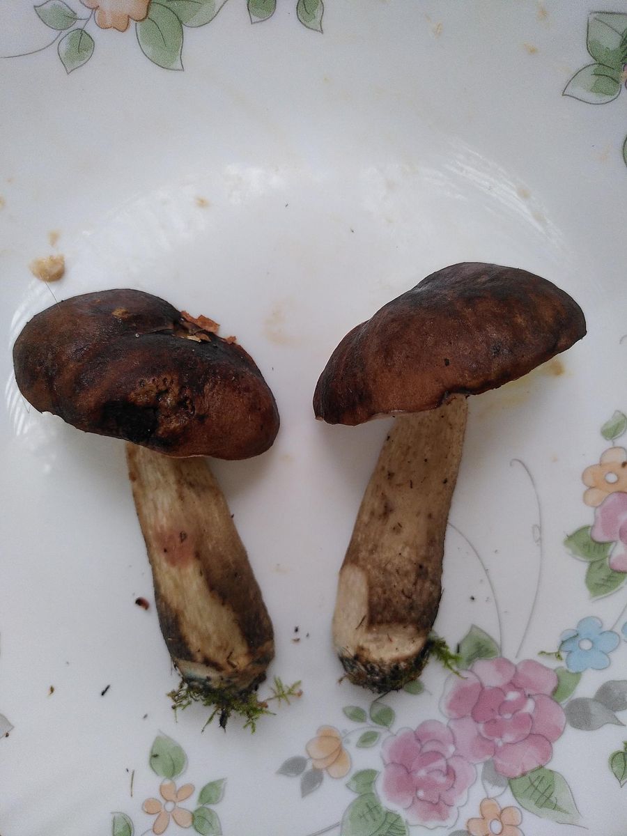 Nummer 2: dunkelbrauner Hut, selbe Birke: kräftige Blaufärbung in der Stielbasis: