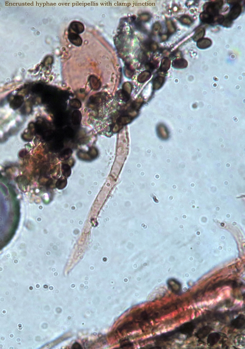 Small to medium-sized fruiting bodies, scent faint and not distinct, taste mucoid and fungoid, bruising of pores becomes slightly darker (= no colour change), bruising of stipe no colour change either when cut context completely yellow even at the base. Stipe bright yellow without reddening at the base including when cut. Some specimens with cracked pileus showed an interesting red reticulate pattern where cracked. No colour change when pores and stipe are bruised
