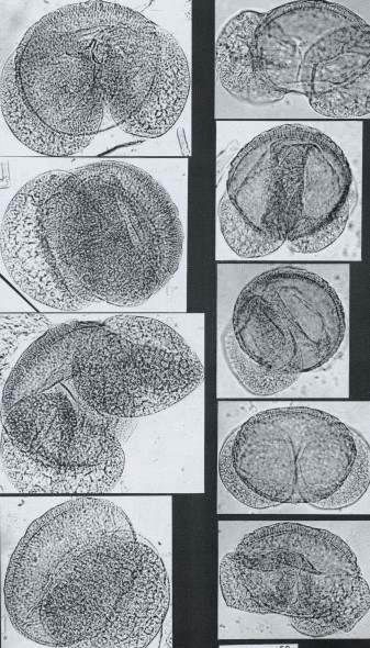 Nadelbaumpollen sind schon unter der Lupe als Riesenprügel zu erkennen, die sind bisüber 100um groß!