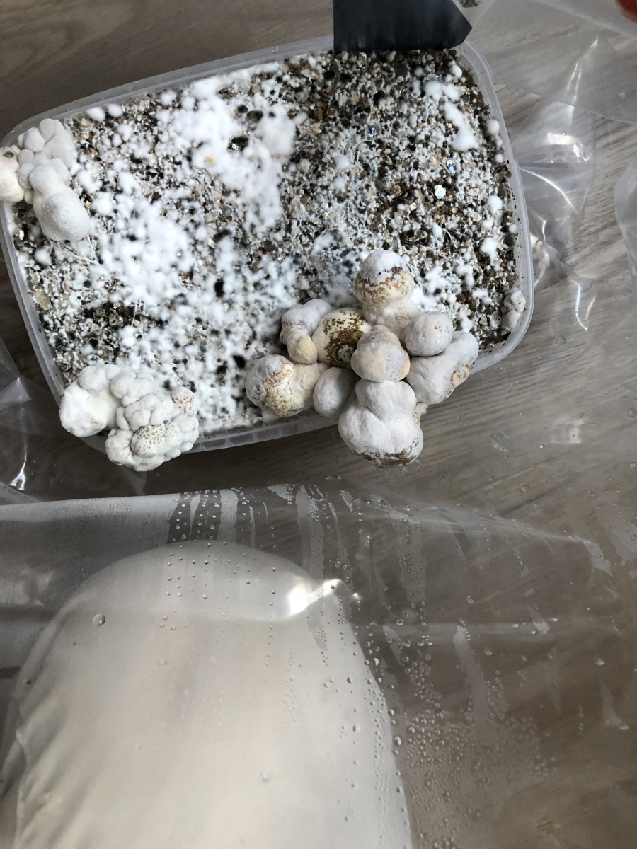 Hallo ihr Lieben. Ich versuche mich aktuell an der Pilzzucht und habe mich vor einigen Tagen gefreut das endlich etwas wächst. Jetzt stelle ich aber fest dass die „Pilze“ nicht wirklich wachsen sondern komischer Weise verwachsen. Es sind wie auf dem Foto zu erkennen auch keine Pilzköpfe oder ähnliches zu erkennen.
