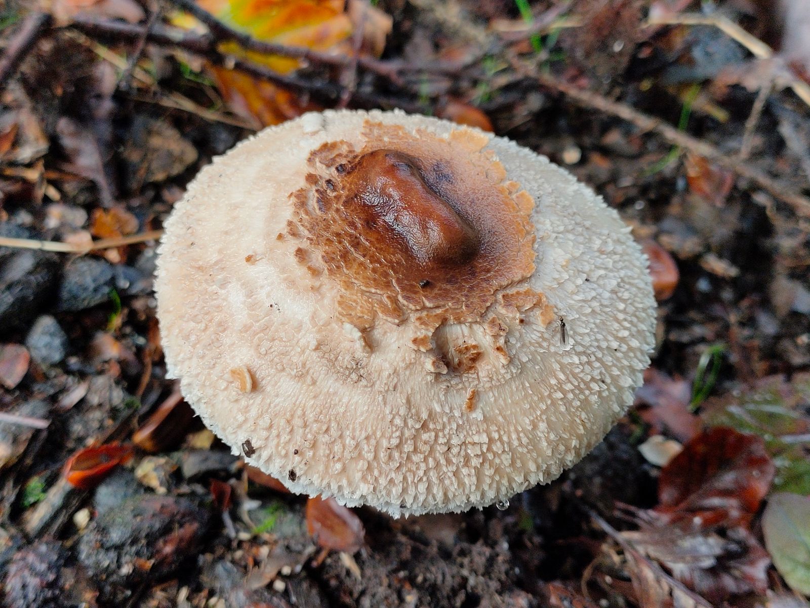 4. Sarcodon squamosus - der Kiefernhabicht Pilz im passenden Nadelstreu.