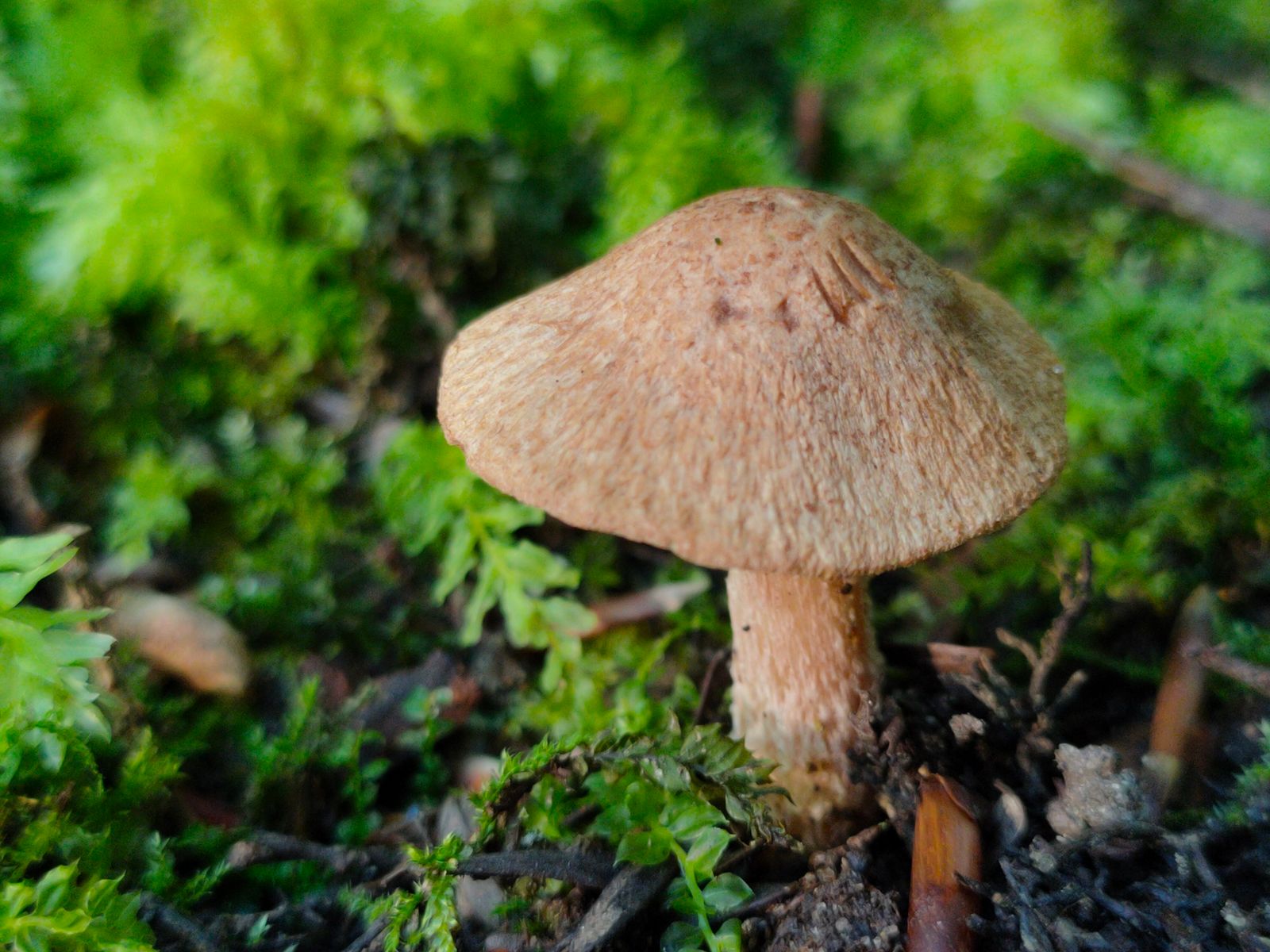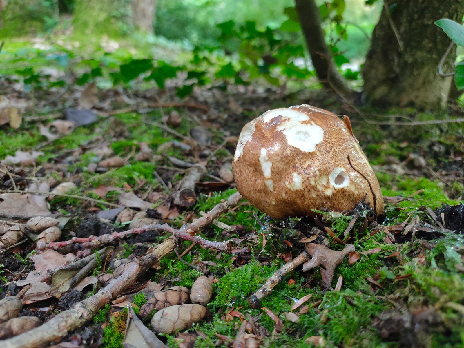 Dieser eine FK stand wie fast alle anderen Funde zwischen den Gräbern im Gras mit hohem Moosanteil. Ein Geruch wurde nicht wahrgenommen.