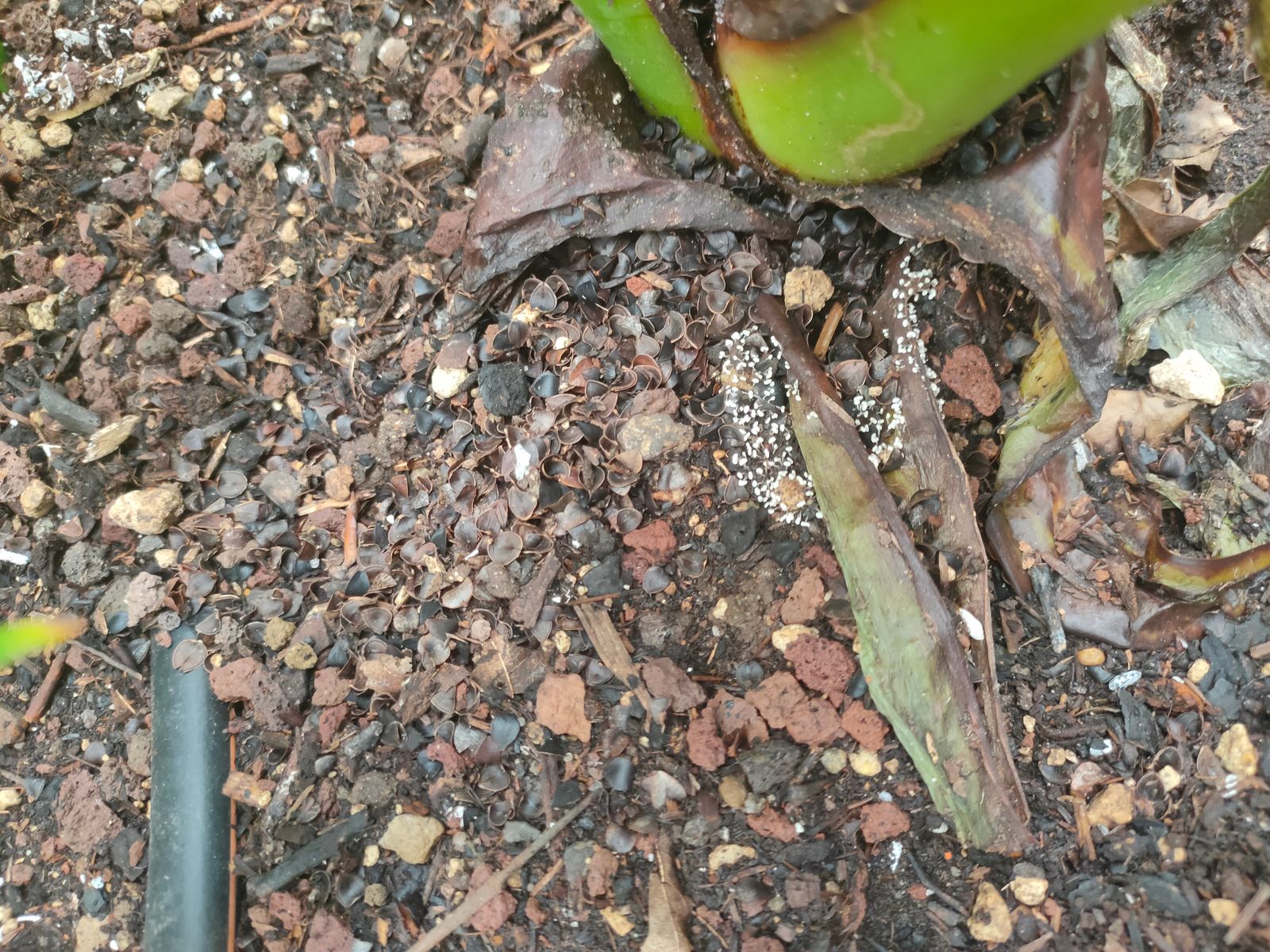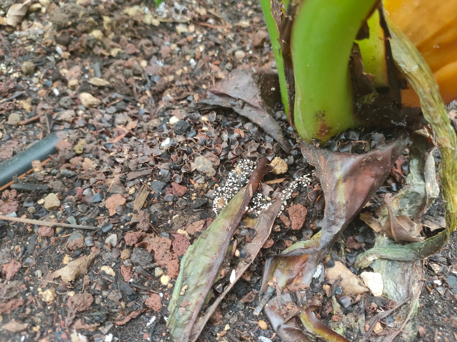 Edit: Schnittbild der Sattellorchel, hohl bis weiss wattig.