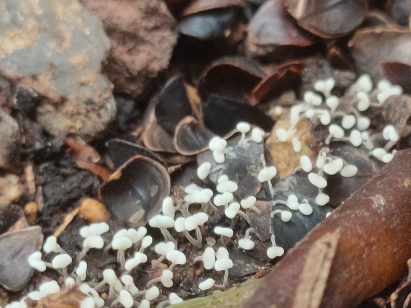3. Ein weitere kleiner junger Täubling (4 cm) als Buchenbegleiter, weiss mit leichtem Rotanteil in Hut. Jung sehr fester speckiger FK (Hut und Stiel).