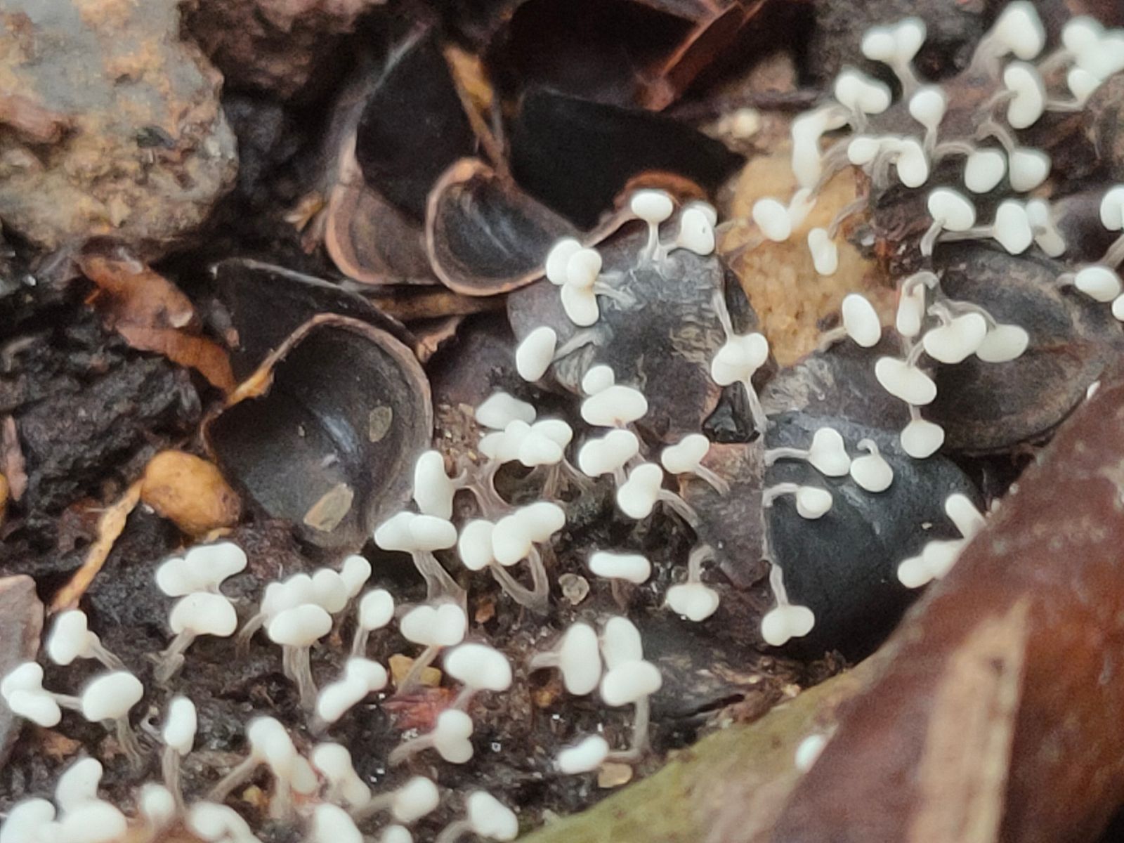 6. Ein nach dem Habistus zu urteilender Trichterling mit spitz gebuckltem Hut mit herablaufenden Lamellen. Der FK ist nur max 1 cm.