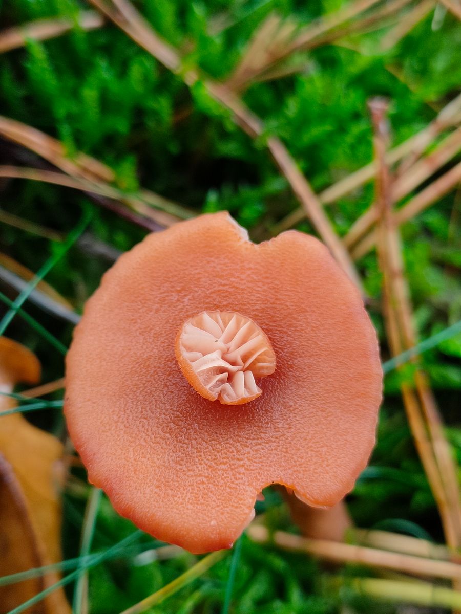 1. Ich halte diesen FK für einen Trichterling. Der Geruch war sehr auffällig. Meine erste Einschätzung war intensiv Anis artig. Die FK sind leider schon etwas überständig, siehe Hutrand. Die Ökologie ist zur einer Seite Grass und Moos und zur anderen Seite hat es eine sehr wechselhafte Mischwaldbestand.