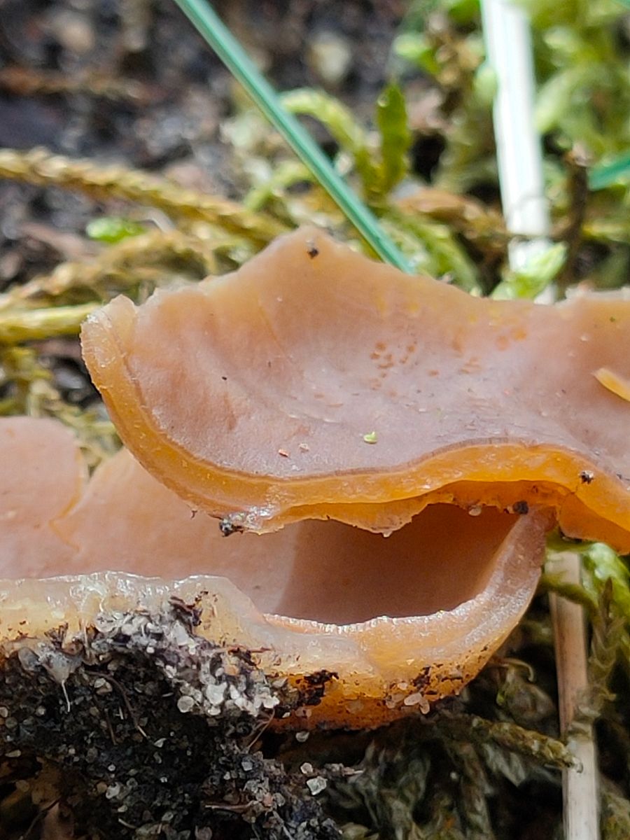 3. Ein brauner Peziza. Wurde vor einer Birke in der Heide auf sandigem Boden gefunden. Der brüchige FK ist ca 4-5 cm im Durchmesser und hat keinen auffälligen Geruch. Das Fleisch zeigt keine Farbabweichung.
