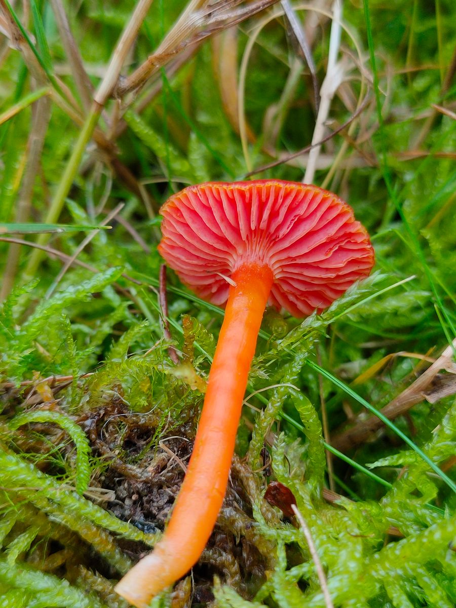 6. Hygrocybe: Mal wieder eine roter Saftling mit leicht rauer feuchter aber nicht klebriger Hutoberfläche.
