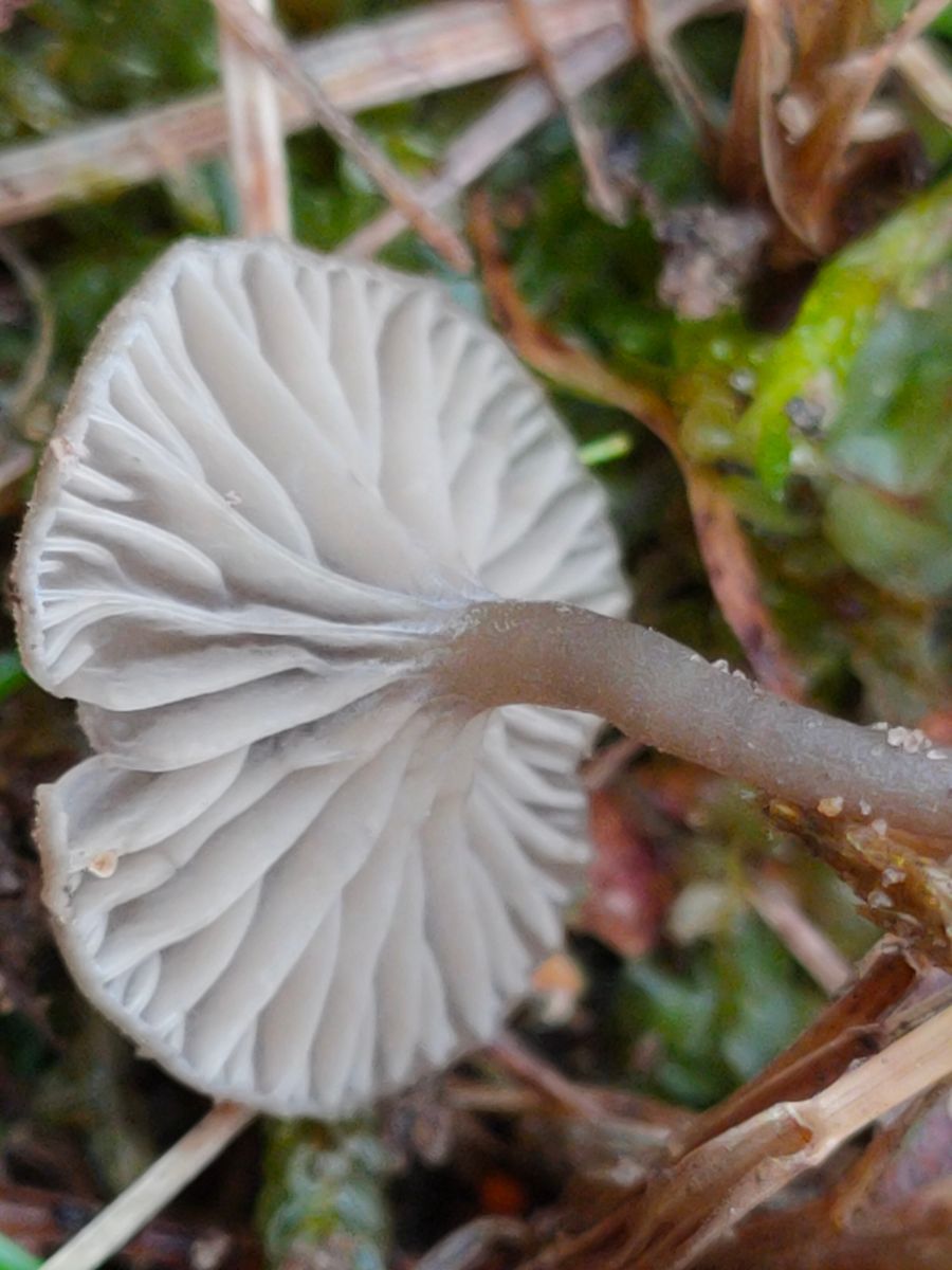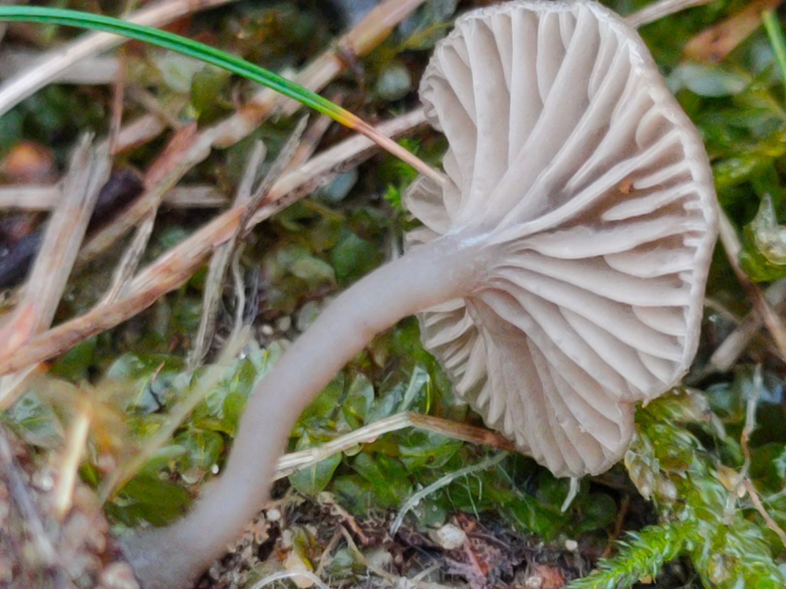 Bei genauer Betrachtung zeigt der Stiel apikal eine weiße Beflockung. Die Lamellen schätze ich als nur leicht angeheften ein.
