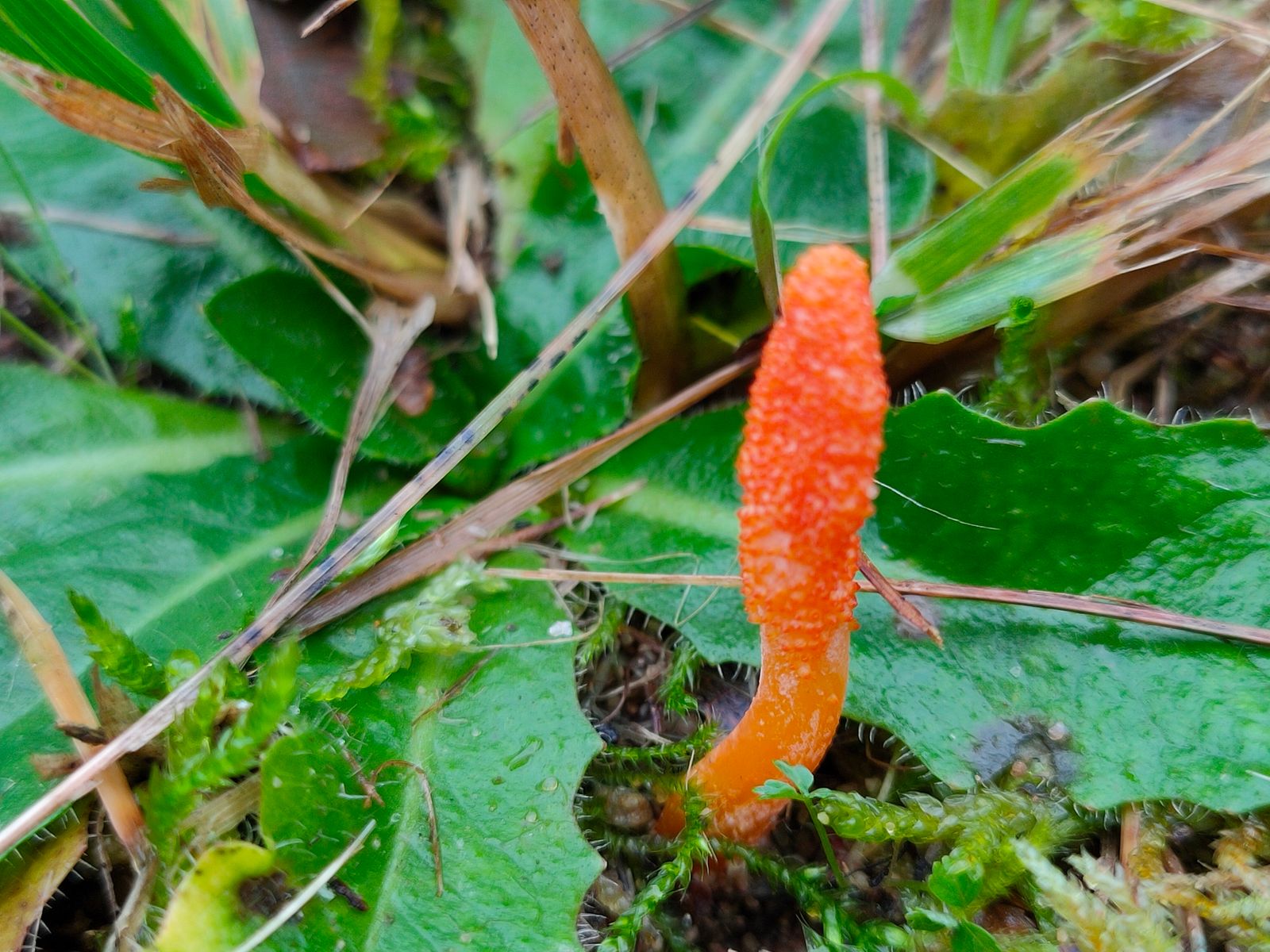 3. Ein tief im Moos gefundener FK eines Birkenmoorhabitats. Der einzel FK hatte bestimmt eine länge von 12-15 cm. Die Hut und Habitusform erinnert mich eher an ein Gallertkäppchen