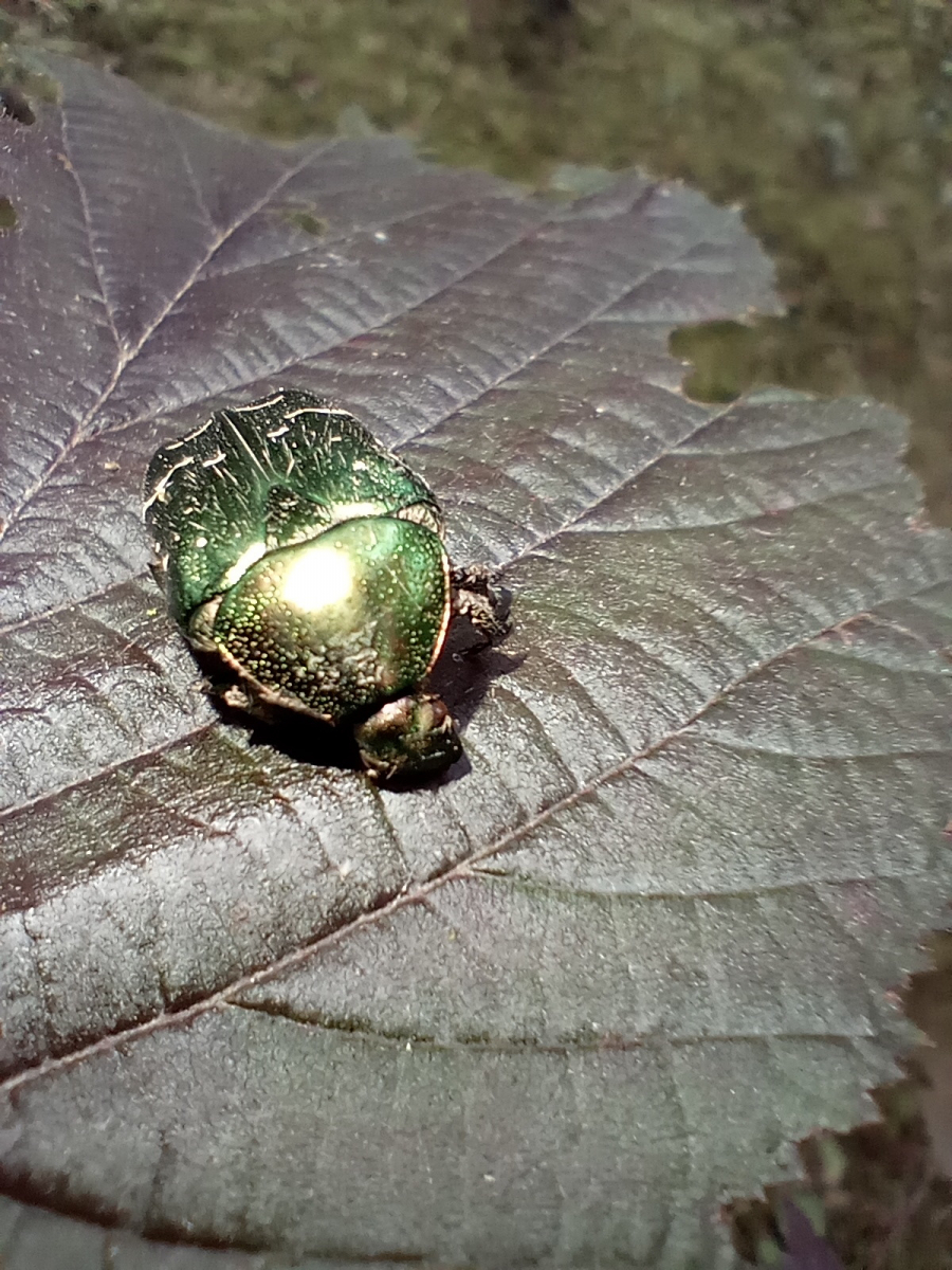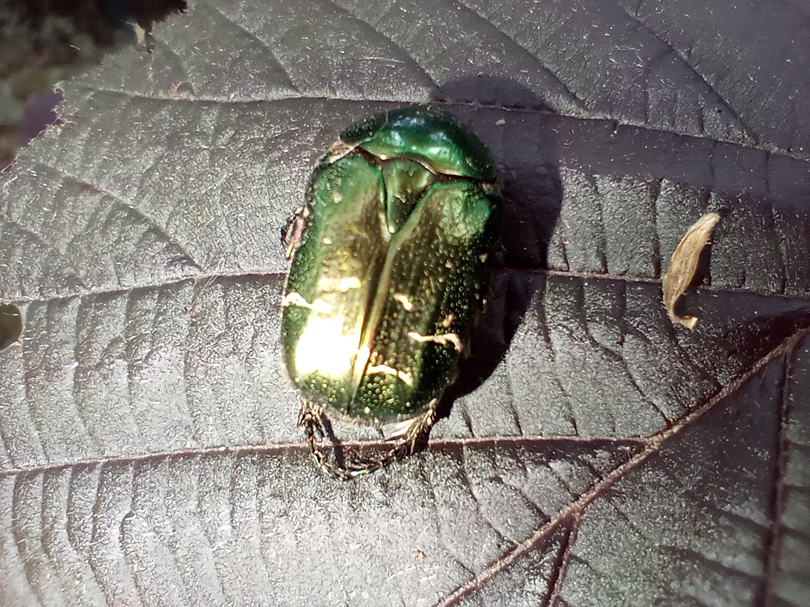 Dieser hübsche Rosenkäfer war schon tot, aber so konnte er wenigstens nicht wegfliegen beim Fotografieren.