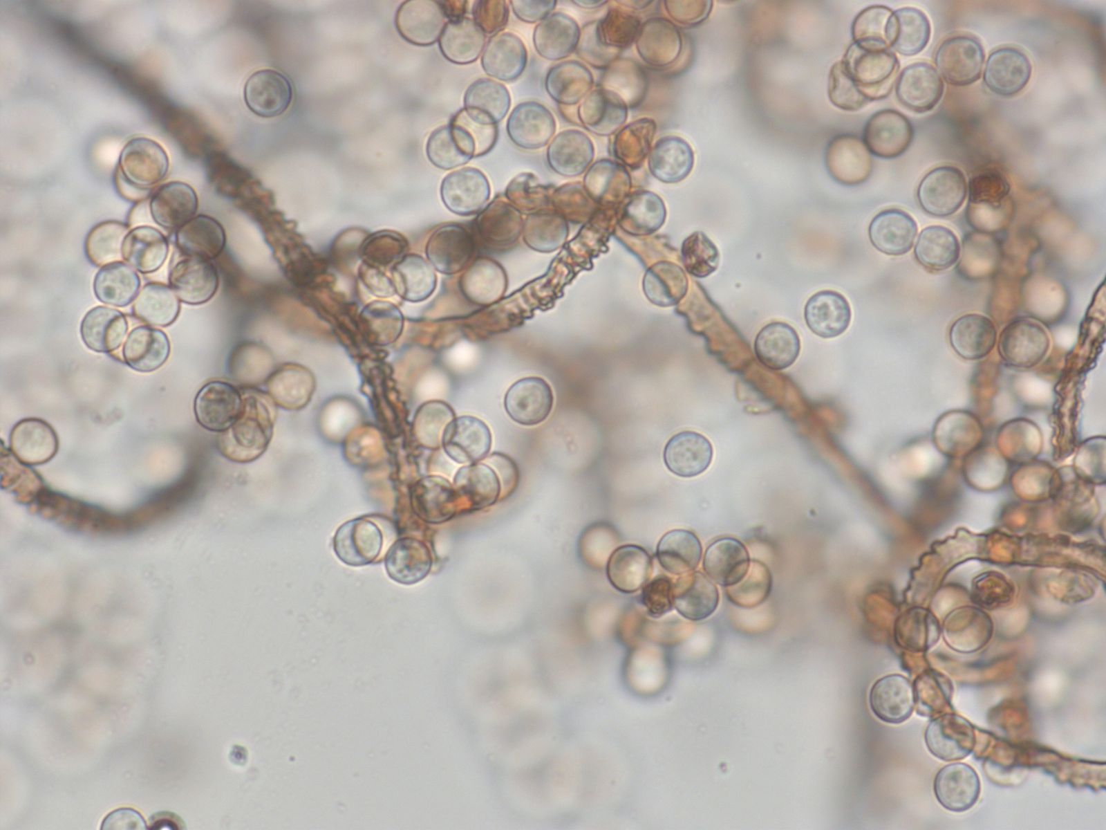 braune inkrustierte Hyphen in HDS, und apikal inkrustierte Pileozystide