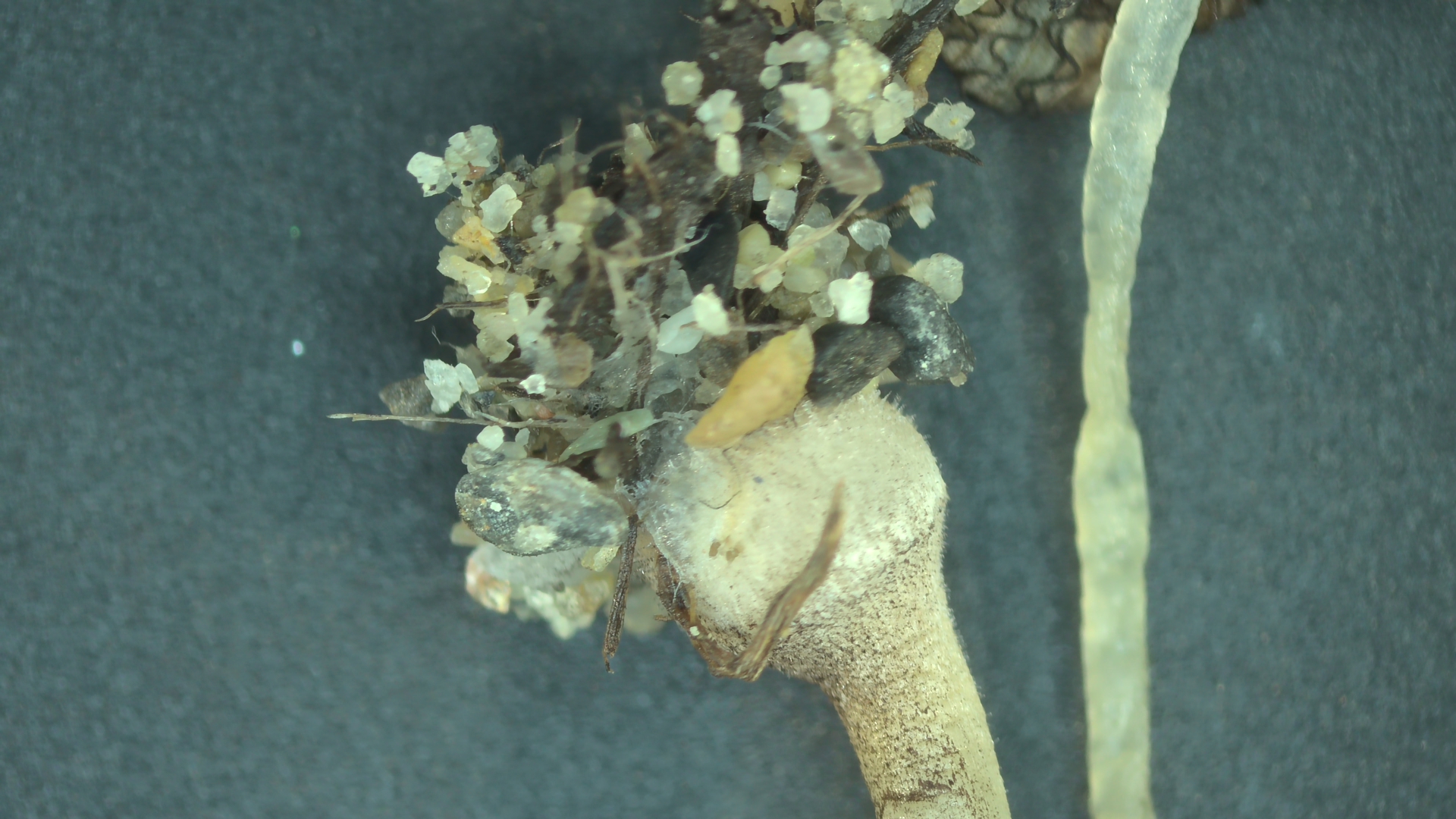 Stielbasis mit Rhizomorphen, irgendwie gerandetes, deutlich ausgeprägte Stielknöllchen