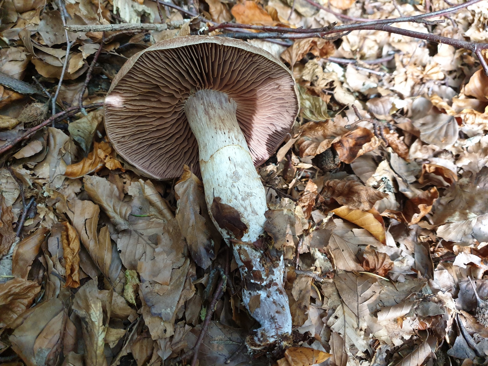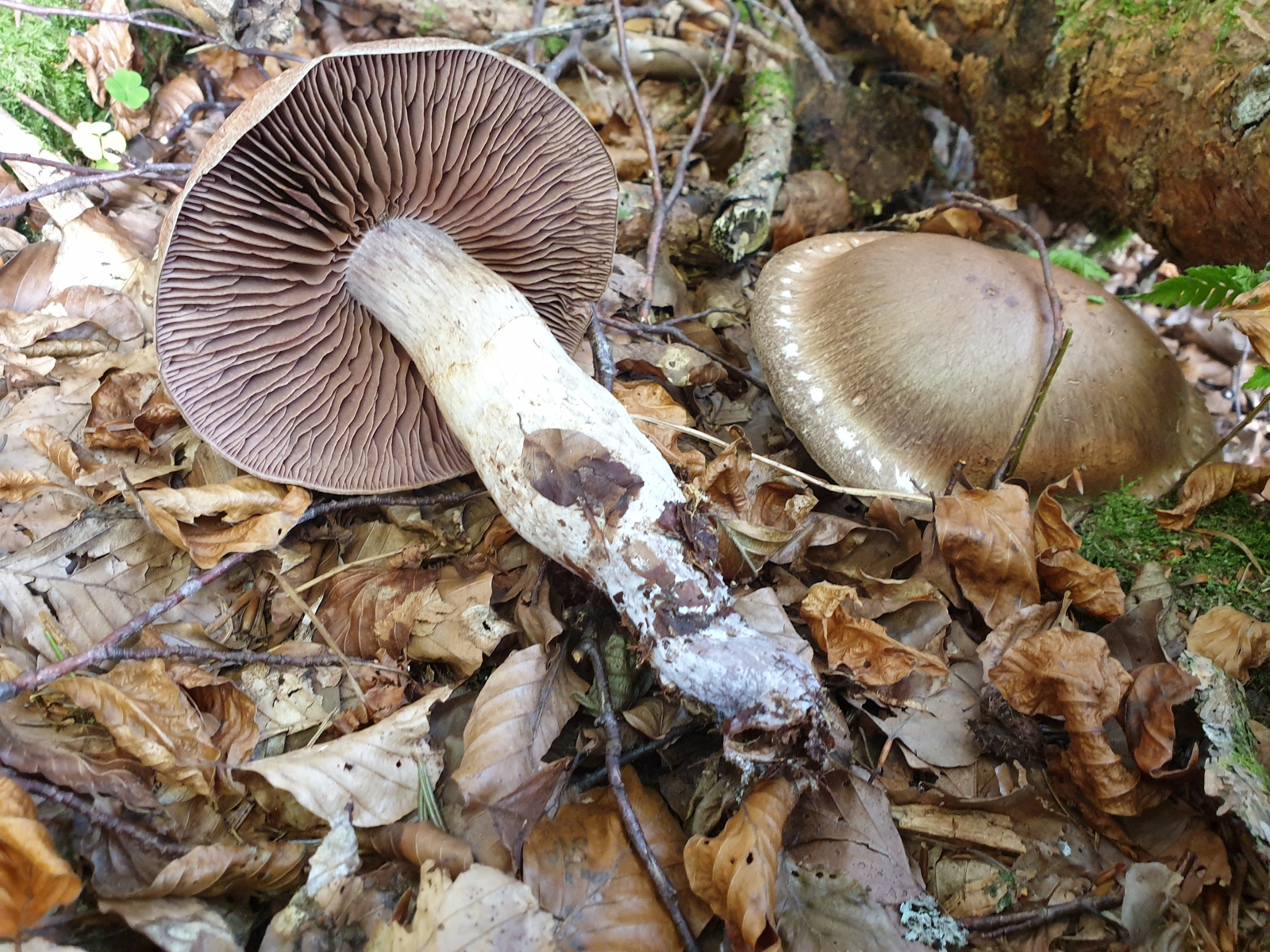 Kämpfe mit der Bestimmung einer sehr stattlichen in allen Teilen braunen (wurzelnden) Cortinarie.