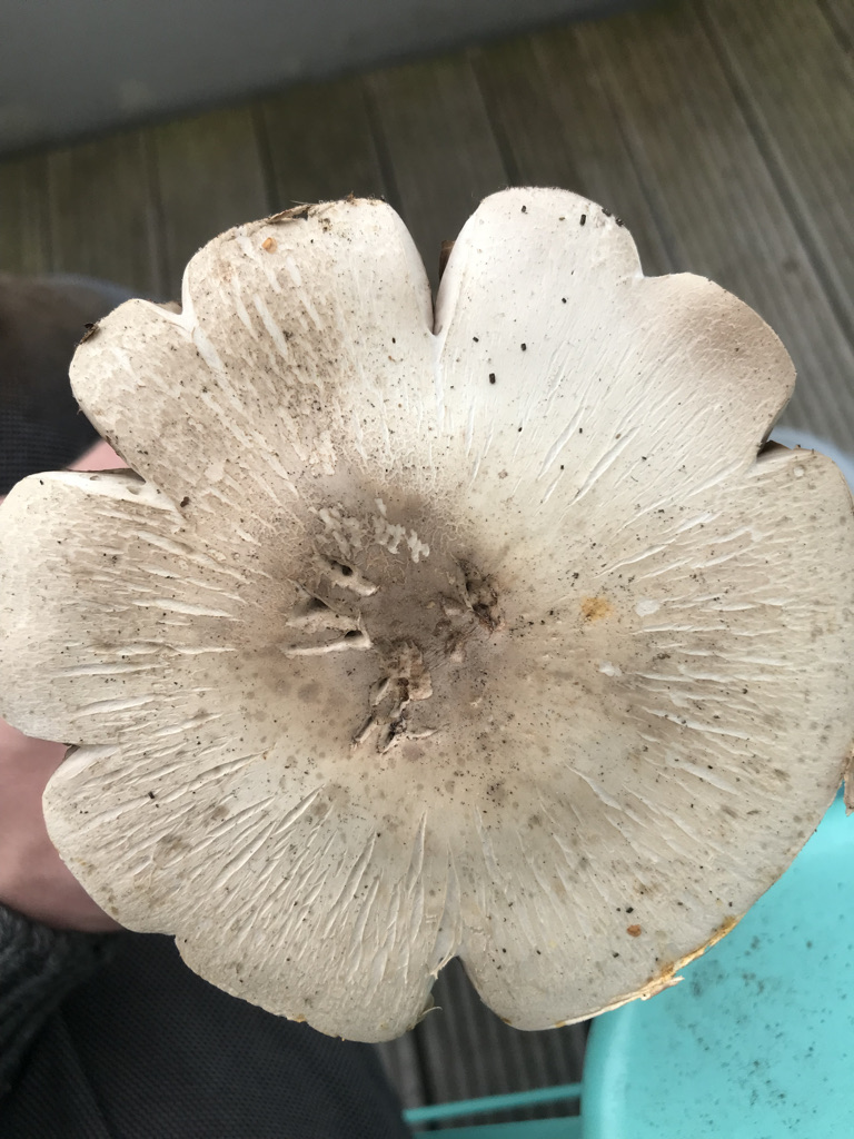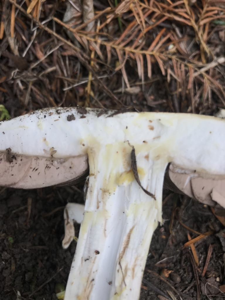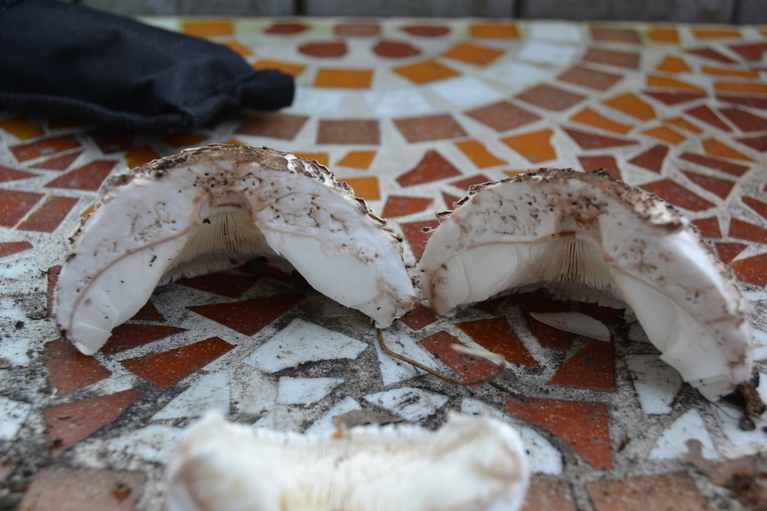 - LamelettenFleisch - weiß, im Anschnitt rötliche "Zone" zwischen Fleisch und Lamellen