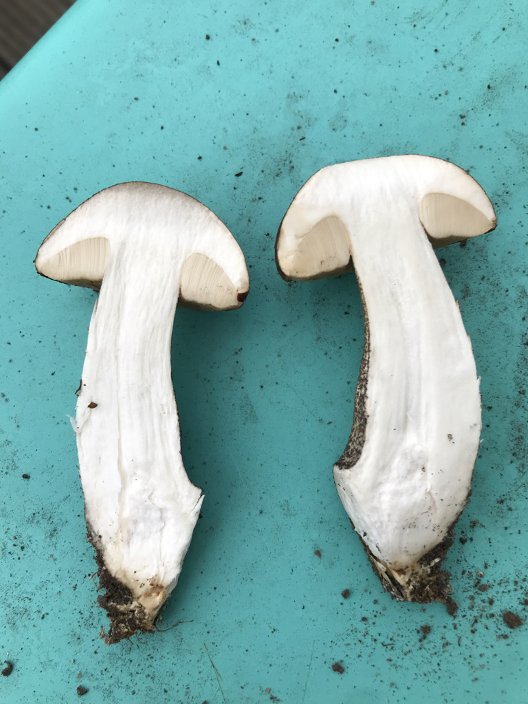 - Fleisch im Anschnitt +- leicht rötendSonstiges - Am Fundort fand ich einige Exemplare vor, die an der Knolle/Basis miteinander verwachsen waren.