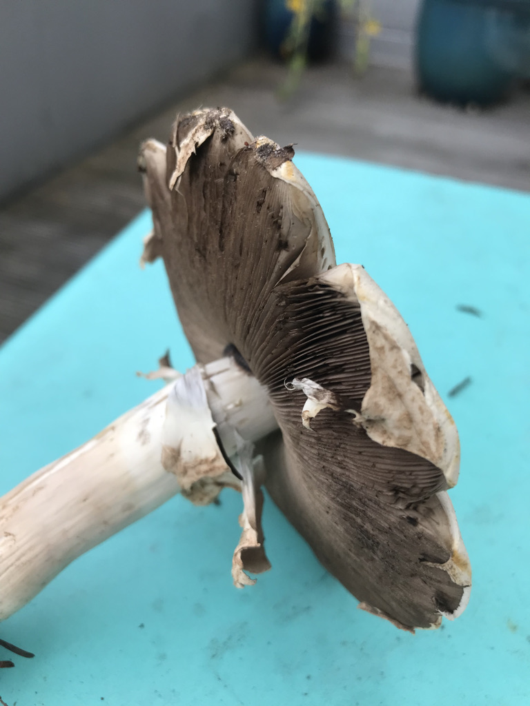 danke für Eure Einschätzungen. Ich war während der Bestimmung total verwundert und bin es immer noch, da ja der Stiel fest angewachsen und keineswegs verschiebbar, sogar häutig mit dem Stiel verwachsen, ist (siehe Bild No. 3).