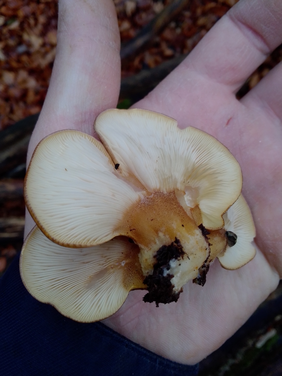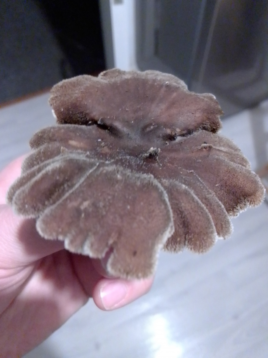 Der Pilz hat keine Lamellen . Es scheit als hätte er nur winzig kleine Poren.