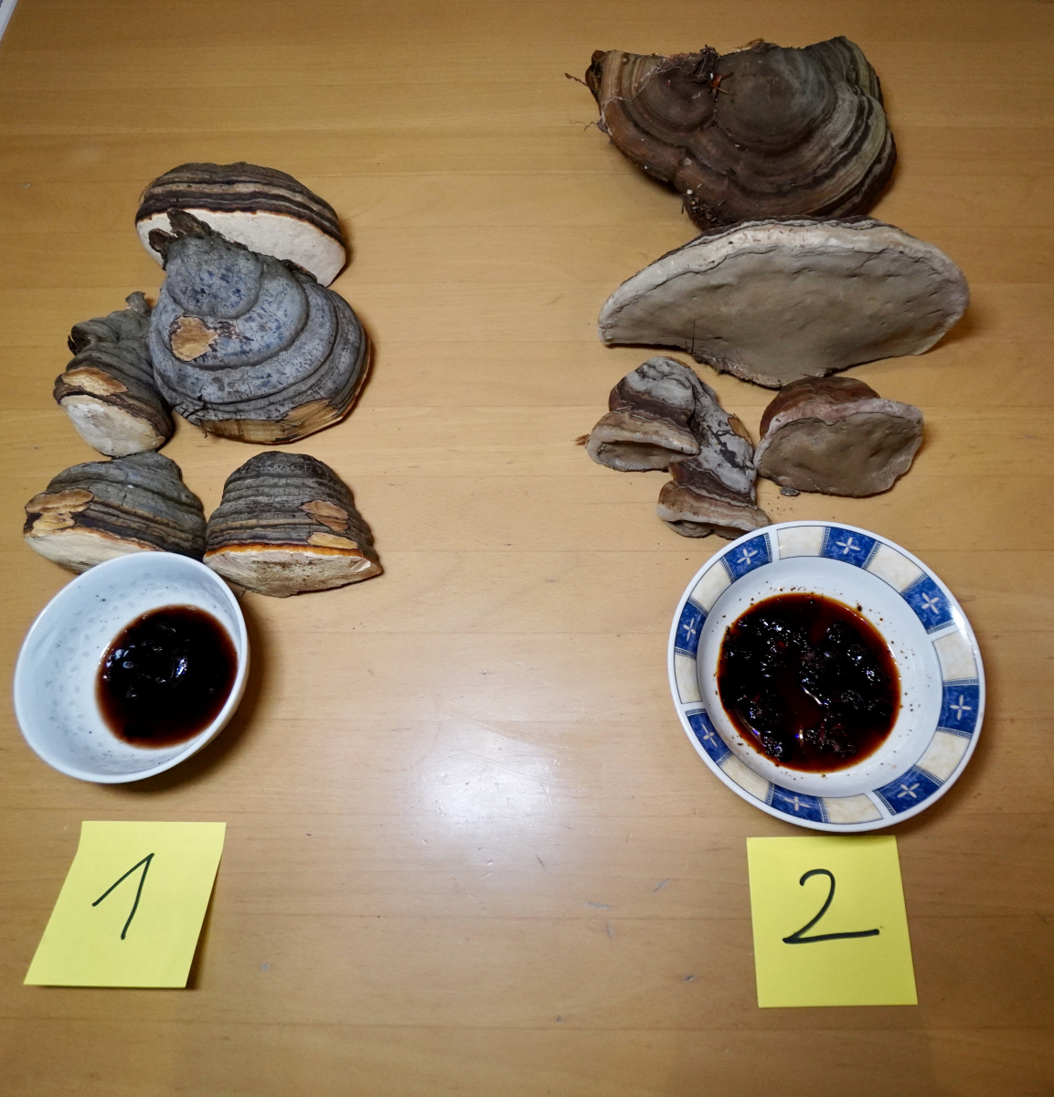 Habe anbei einige (Zunder?)schwämme abfotografiert. Habe alle mit Kalilauge getestet bin aber bei der Bestimmung noch nicht sicher. Unter den Schwämmen