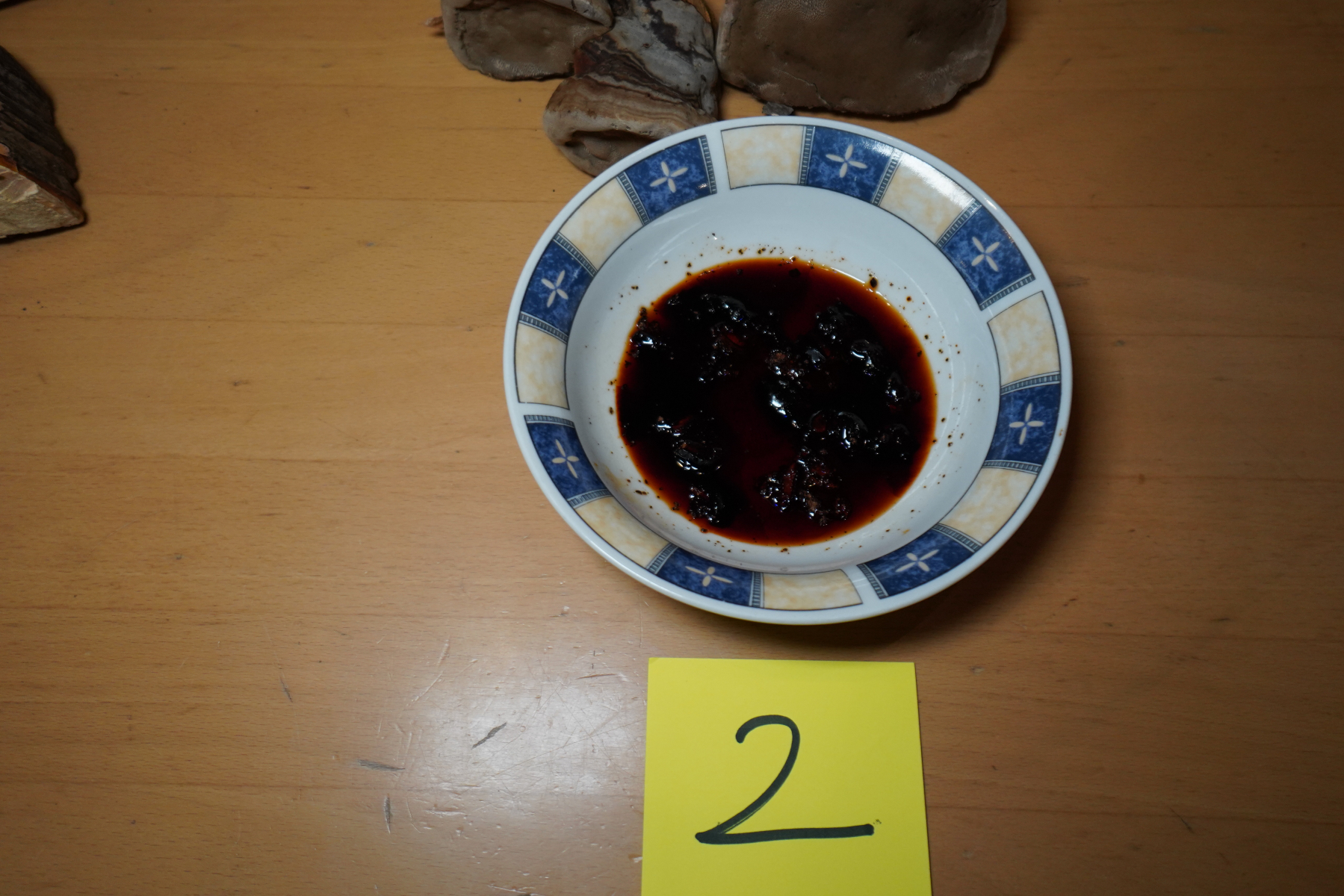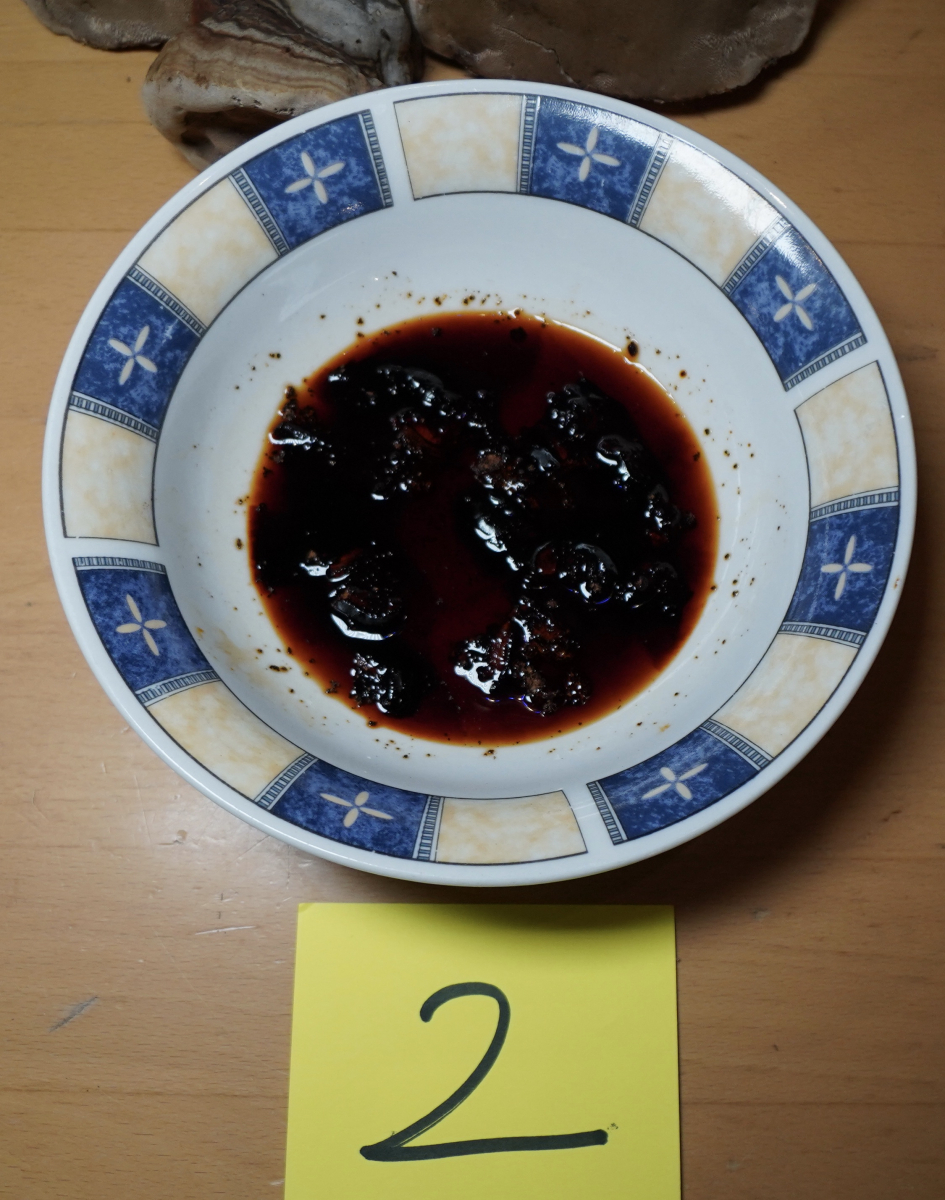 1 färbt sich die Kalilauge sehr langsam erst bräundlich und dann rot, bei den Schwämmen mit 2 färbt sich die Kalilauge sehr viel schneller rot und wird so richtig intensiv rot.