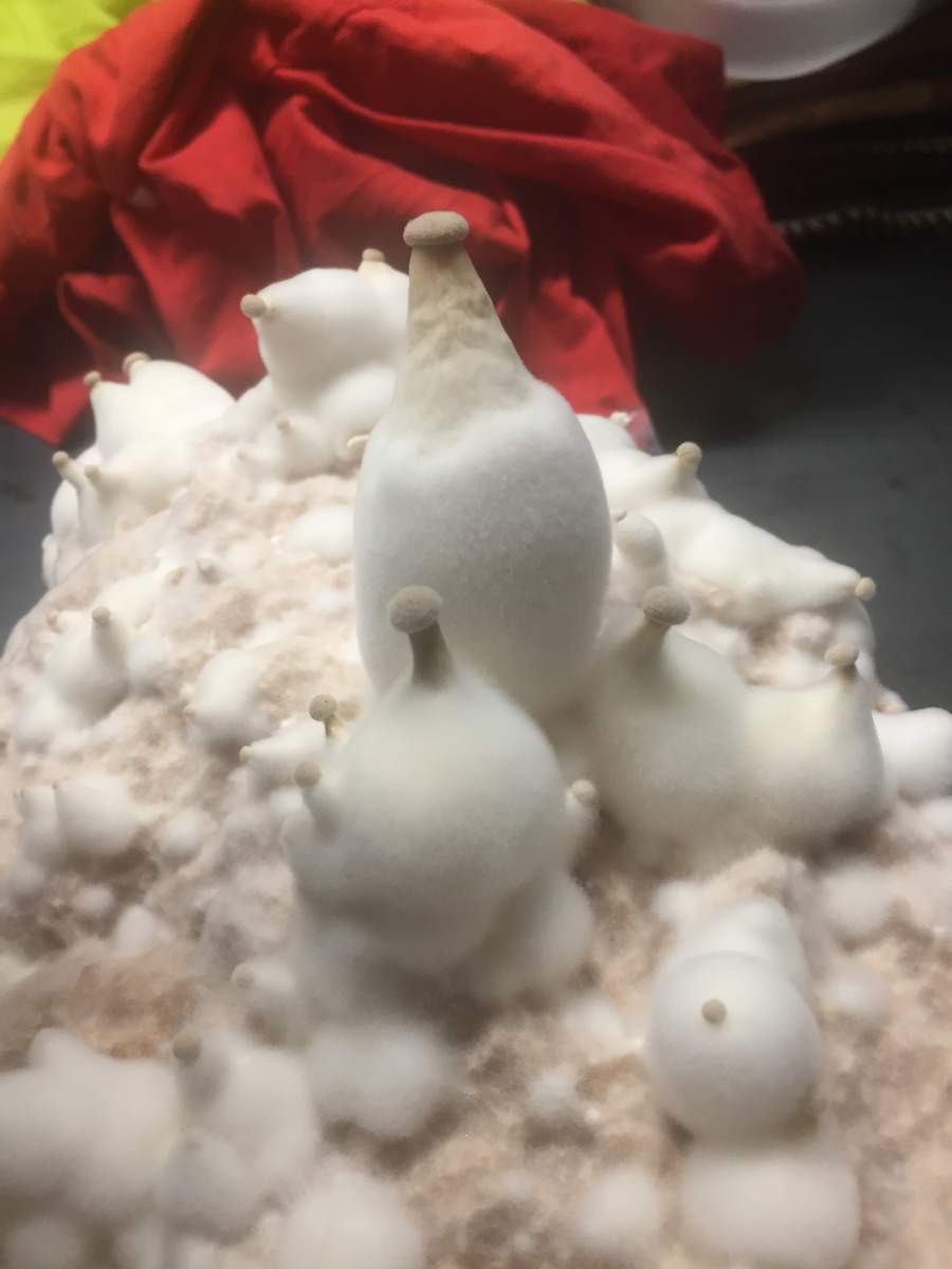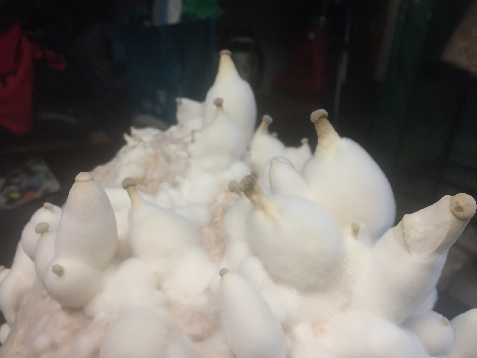 Leider sehen zurzeit meine Fruchtkörper im Pilzzuchtzelt so aus. Kann es sein, dass auch Kräuterseitlinge mit dem CO2 so ihre Probleme haben? Bis jetzt hab ich nur beim Austernseitling dazu Erfahrungen gemacht. Die Luftfeuchtigkeit ist sicher ausreichend (Blöcke sind super flaumig und flauschig), und bei 14 Grad im Keller Fruchten die Blöcke wie verrückt.