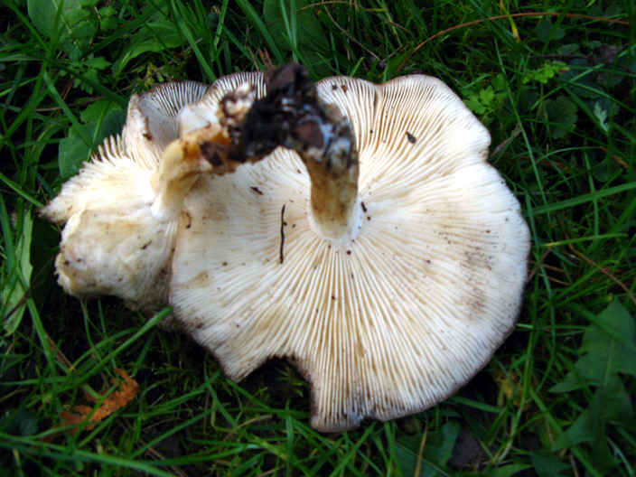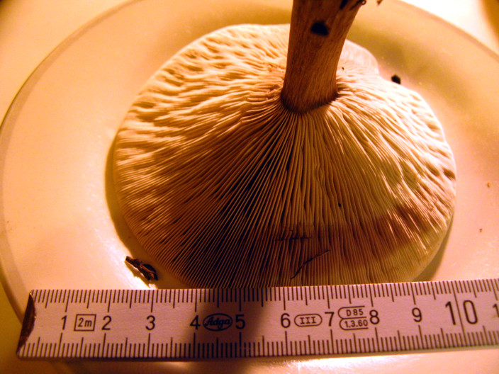 Aufgefallen ist mir der weiße Rand unterhalb des Hutansatzes am gelblichen bis weißen Stiel (vgl. Bild 2), weiterhin finden sich meist 2 Fruchtkörper dieser Art in nächster Nähe.