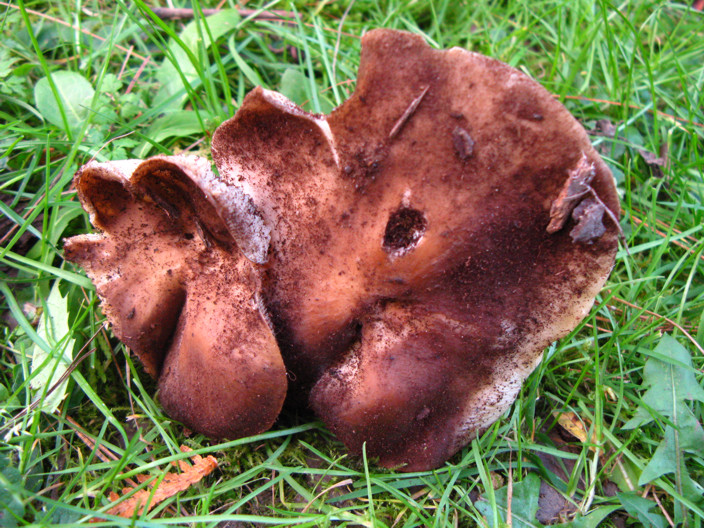 - Beschaffenheit des Hutes: glatt, trocken, die auf den Bildern zu sehenden Partikel sind keine Schuppen, sondern anhaftende Mulchreste