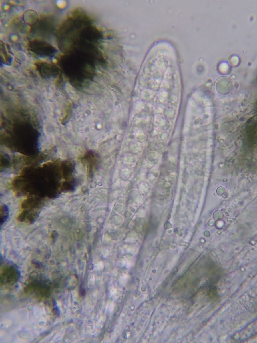 Asci 110 x 20 µm, zylindrisch, 8-sporig; Sporen 2-reihig.