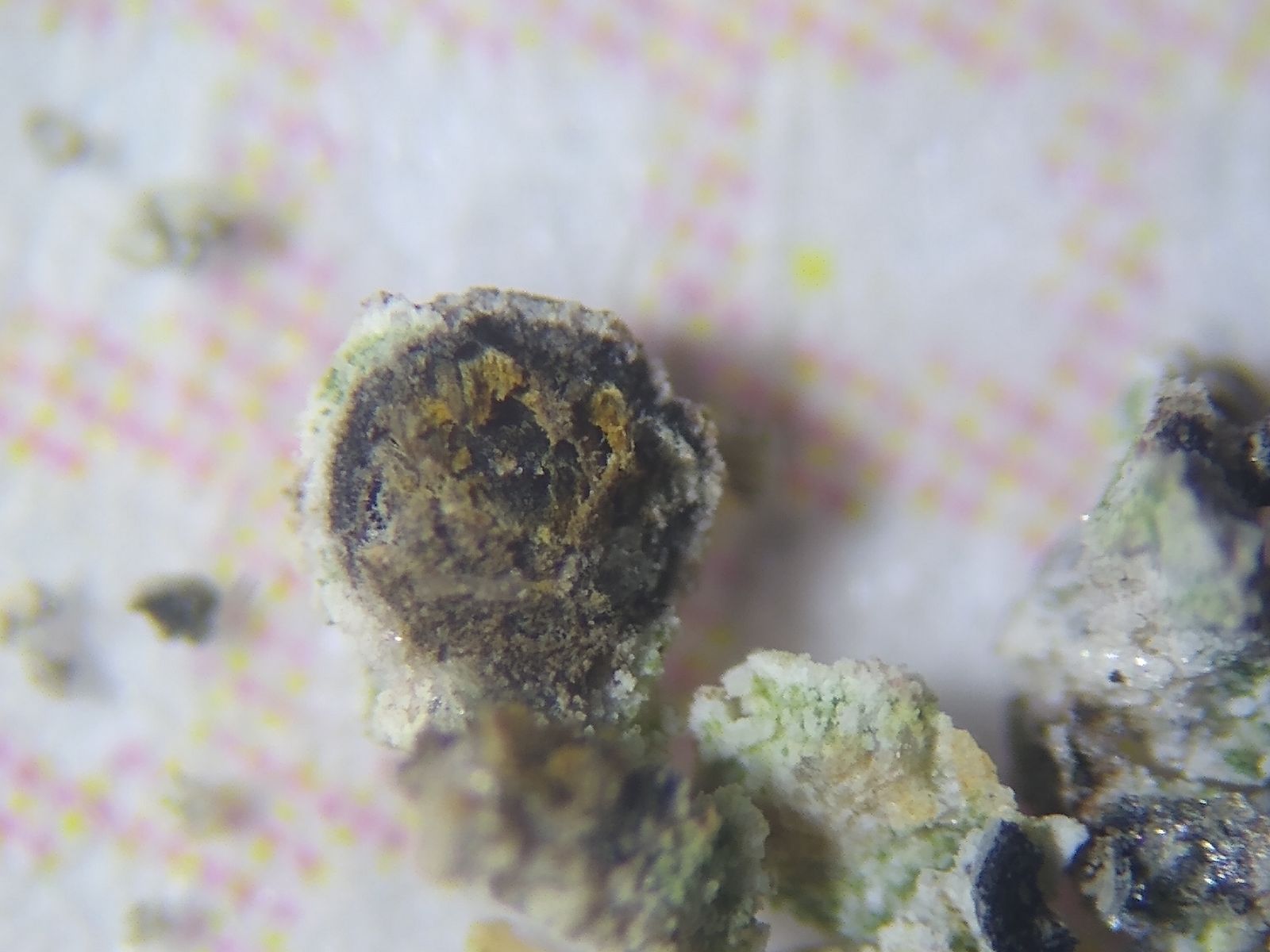 Ich vermute, dass Fruchtkörper und gelber Thallus zusammengehören.