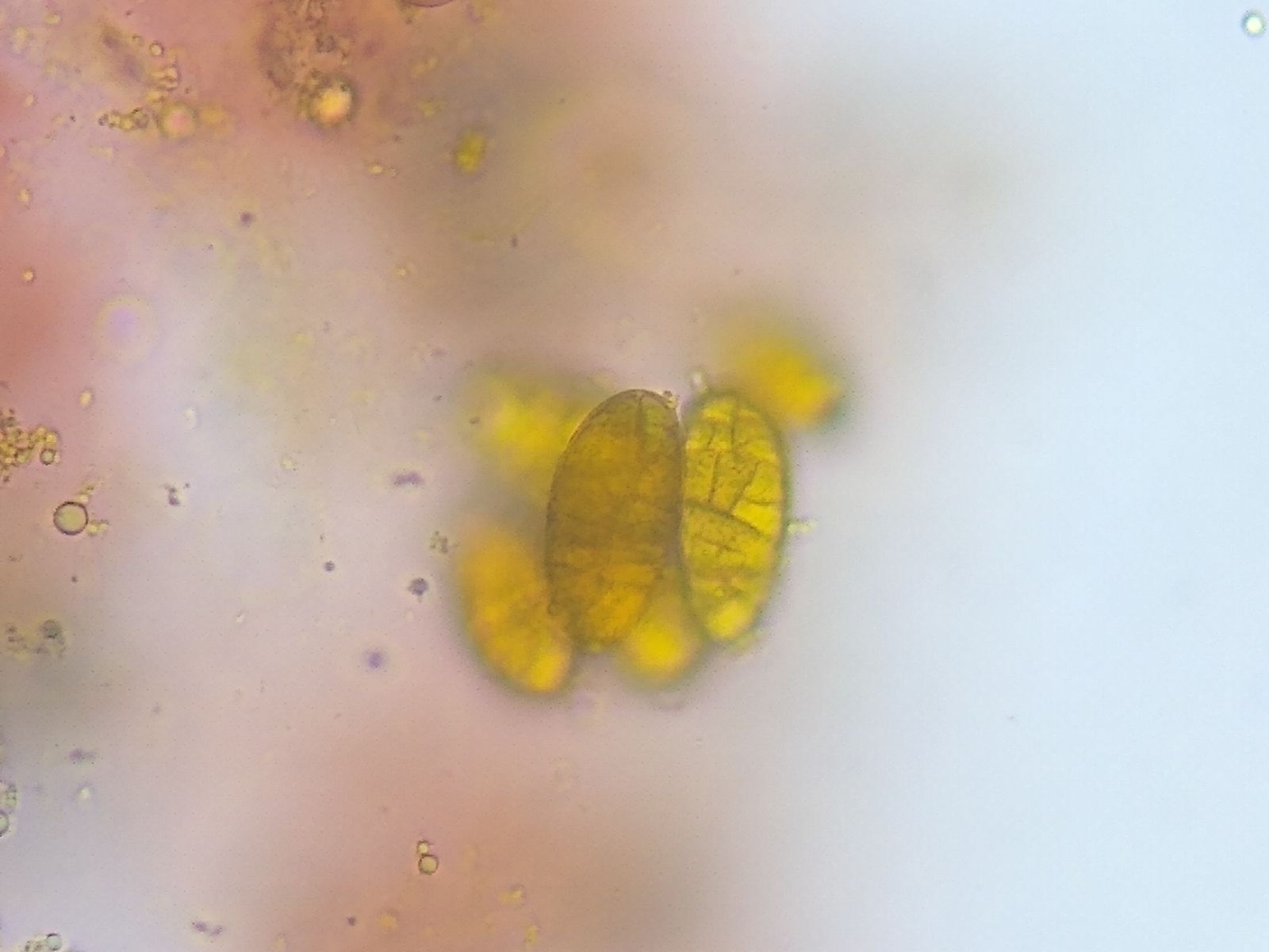 Bild 5 In einem Wassertröpfchen schwimmend erscheinen die Fruchtkörper in Auflicht gelblich.