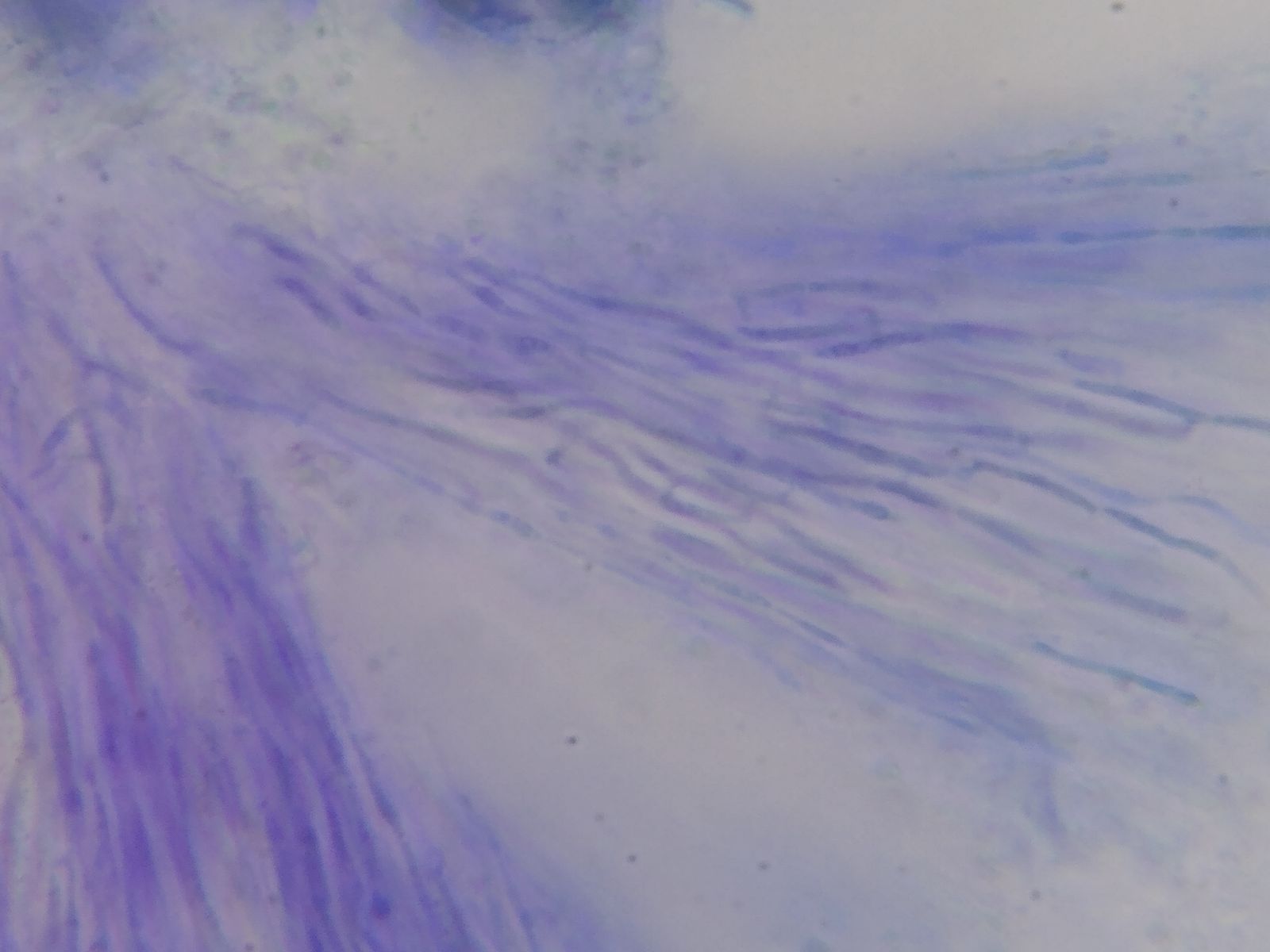 Auffällig ist die blaue Reaktion unter dem Hymenium im kugelzelligen (?) Hypothecium.