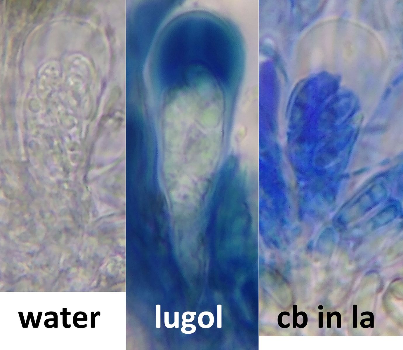In Lugol und besser in BWB sind (auch) 2-zellige Sporen deutlich erkennbar.