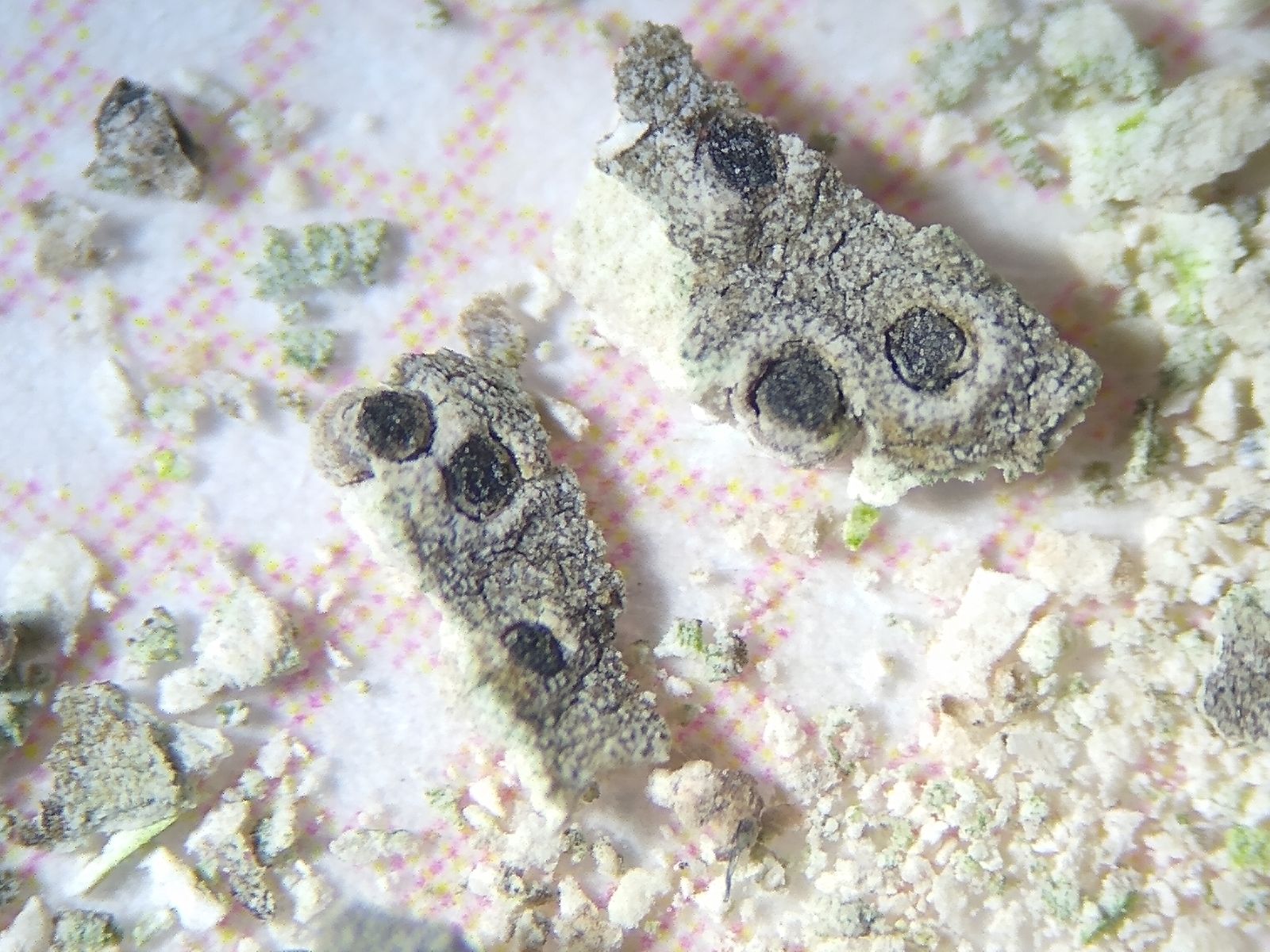 Auf diesem Substrat haben sich einige Krustenflechtenarten angesiedelt, neben der zu besprechenden Art u.a. Acarospora monium und Catapyrenium cf. cinereum.