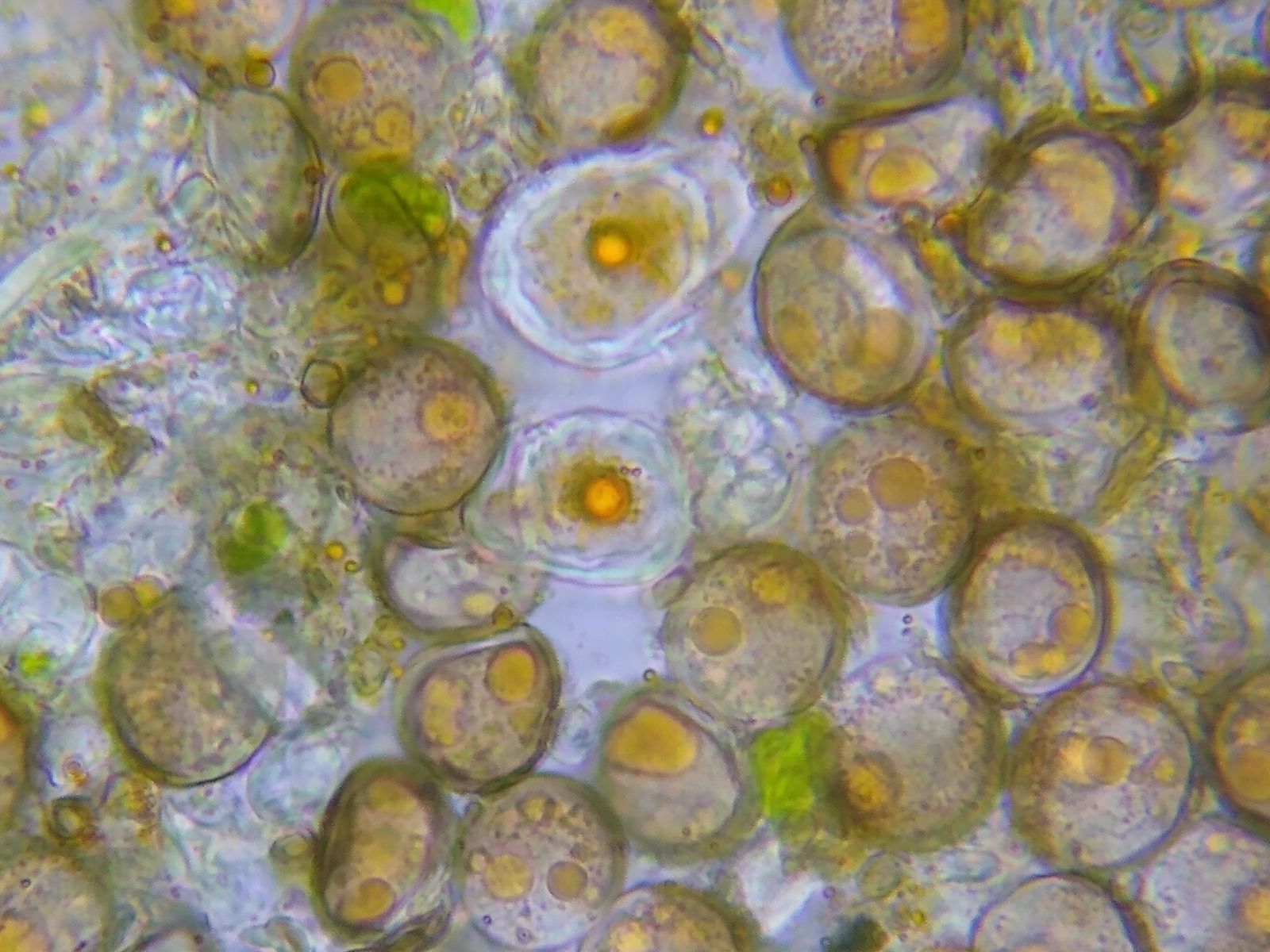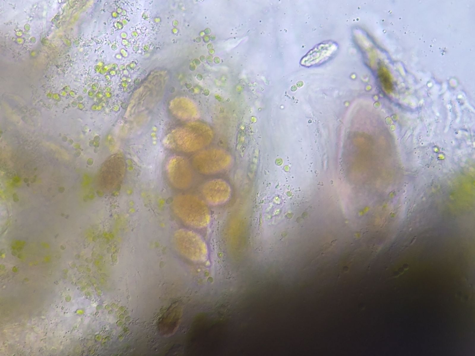 Bild 9 ...lassen sich 8-sporige Asci mit gelblichen Sporen erkennen.