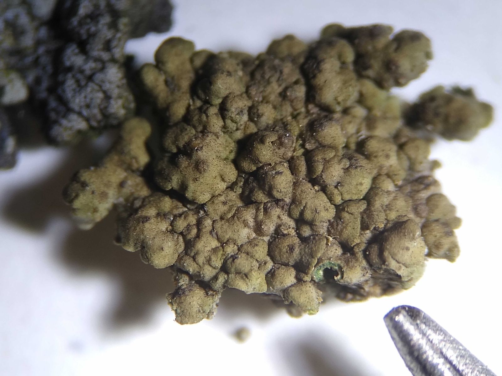 Bild 4 Getrocknete Probe: Der olive, schuppige Thallus ist unbereift.