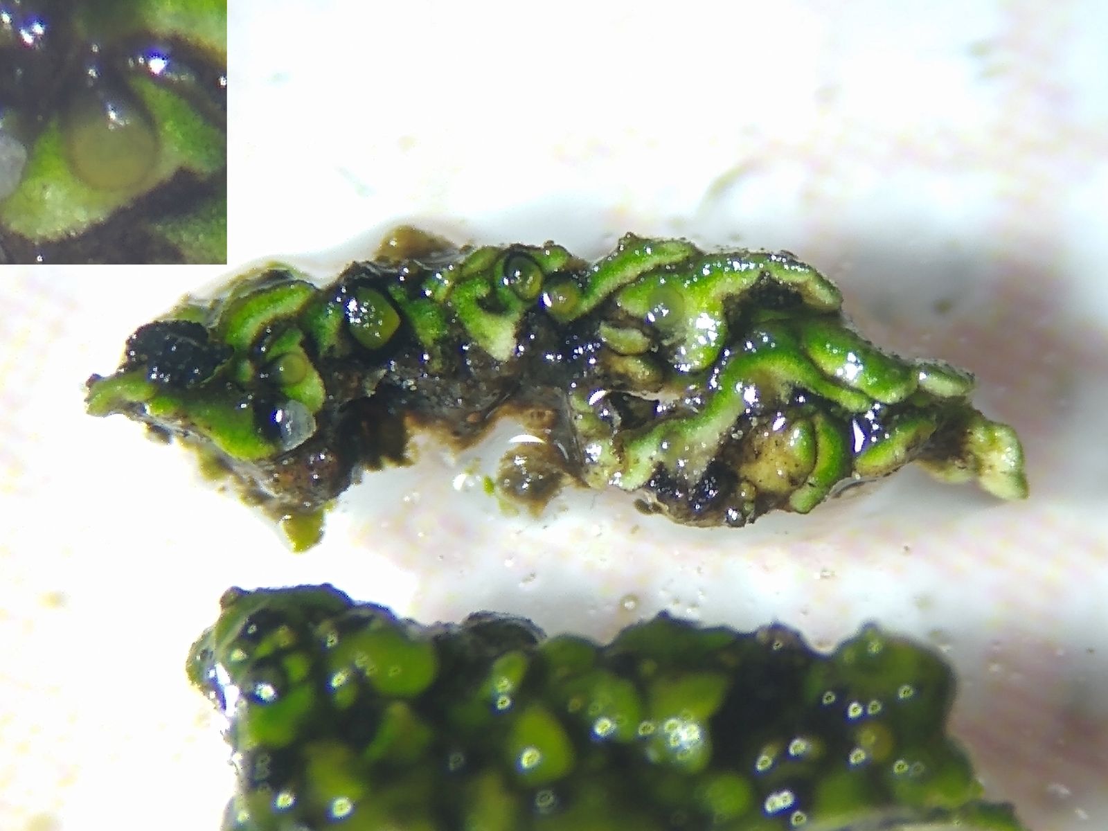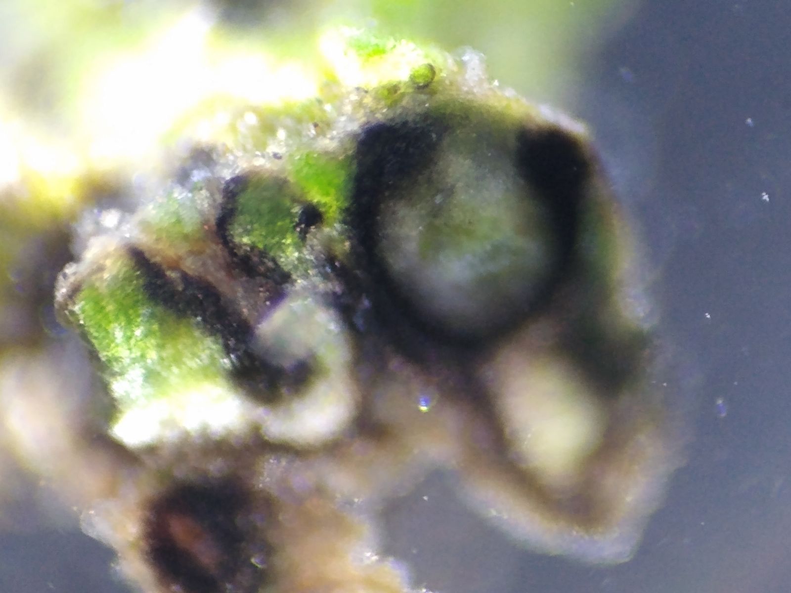 Der Thallus hier in der Mitte schwärzlich verfärbt und absterbend.